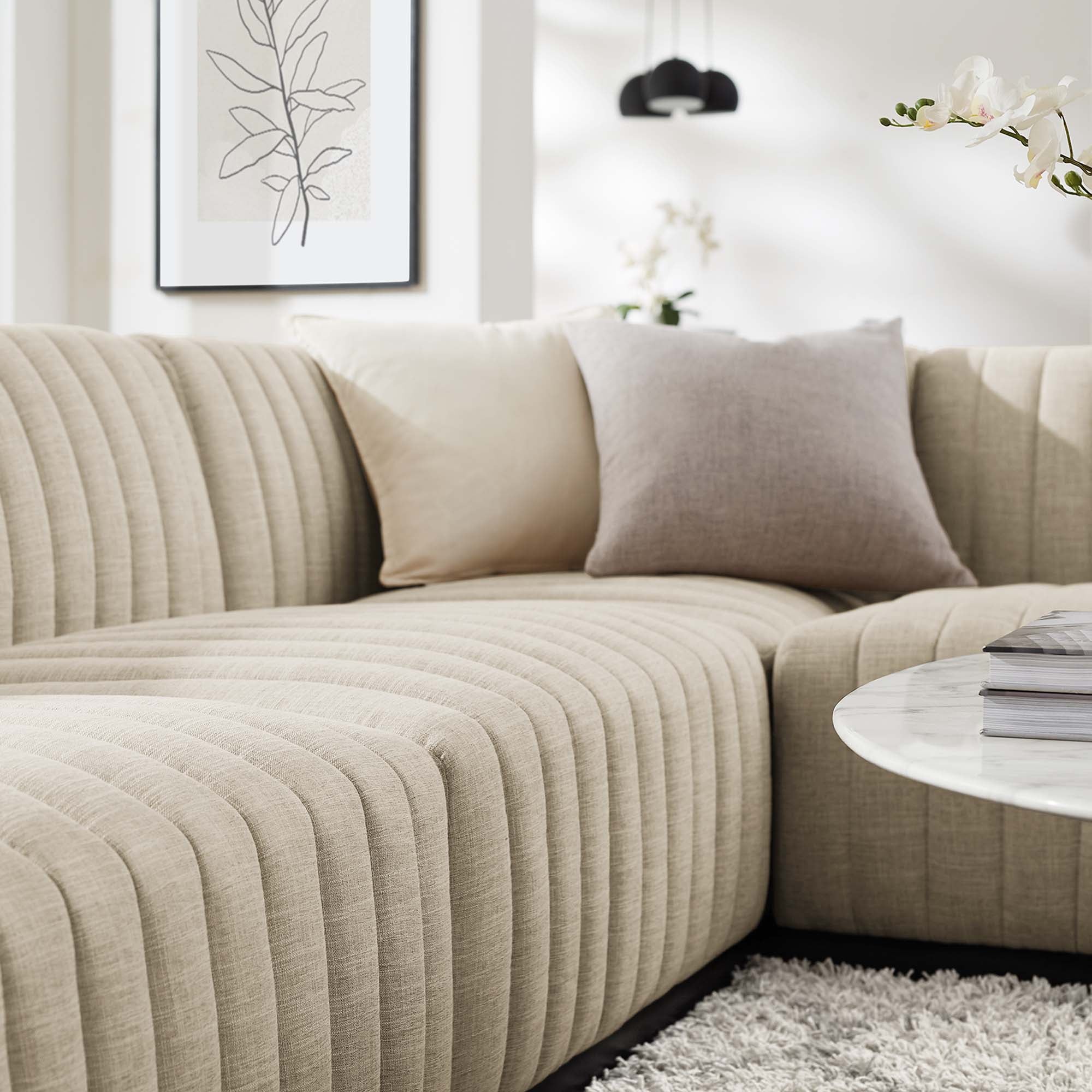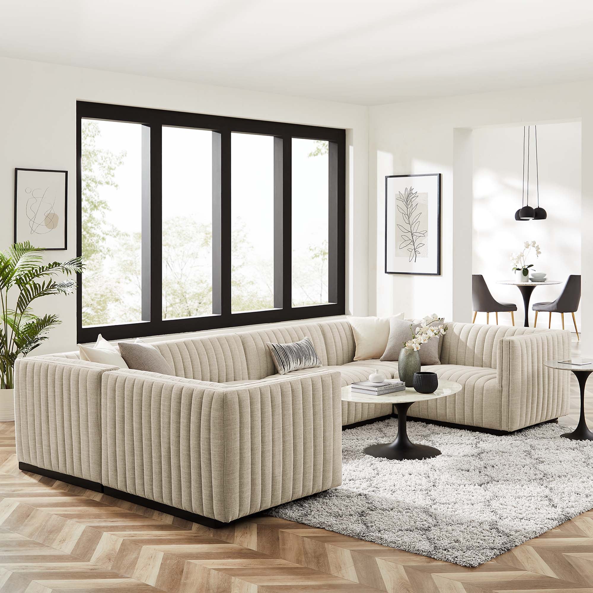 Conjure 6-Piece Channel Tufted Upholstered Fabric U-Shaped Sectional in Black Beige