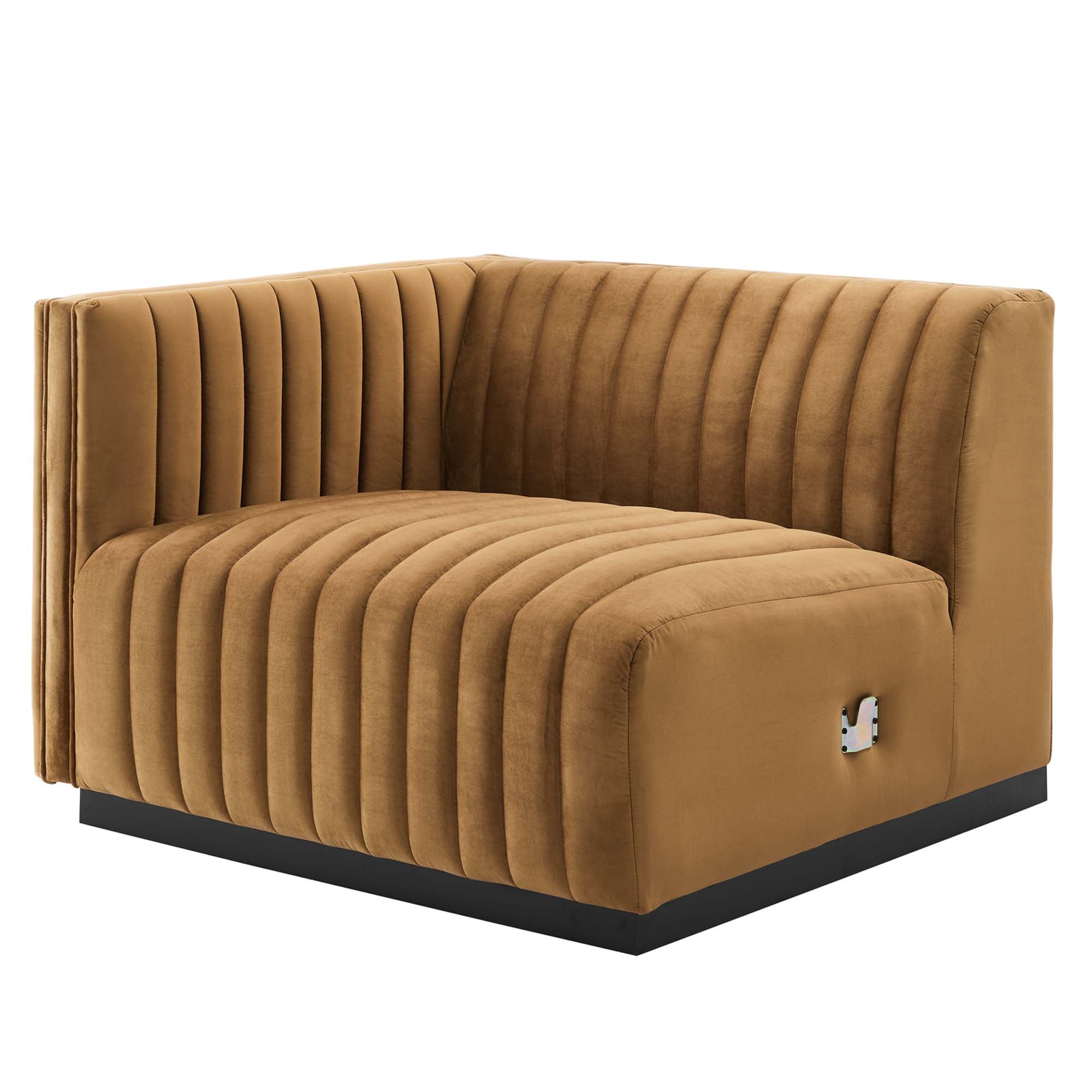 Conjure Channel Tufted Performance Velvet Left-Arm Chair in Black Cognac