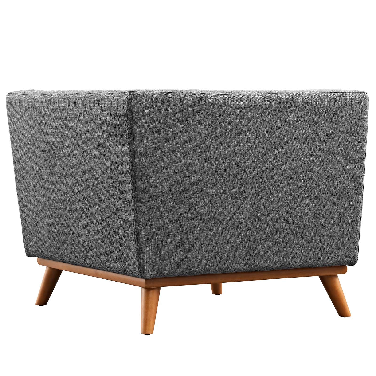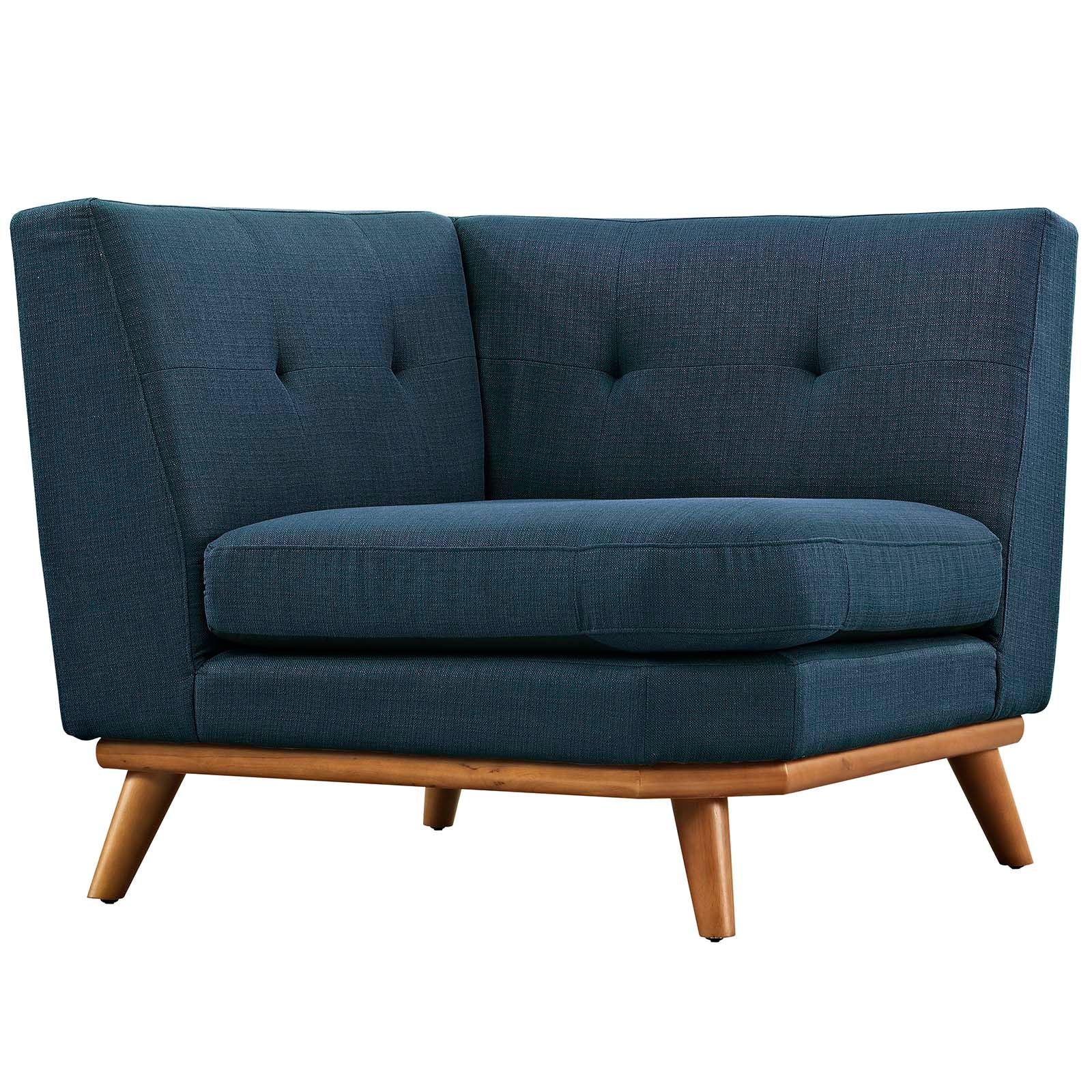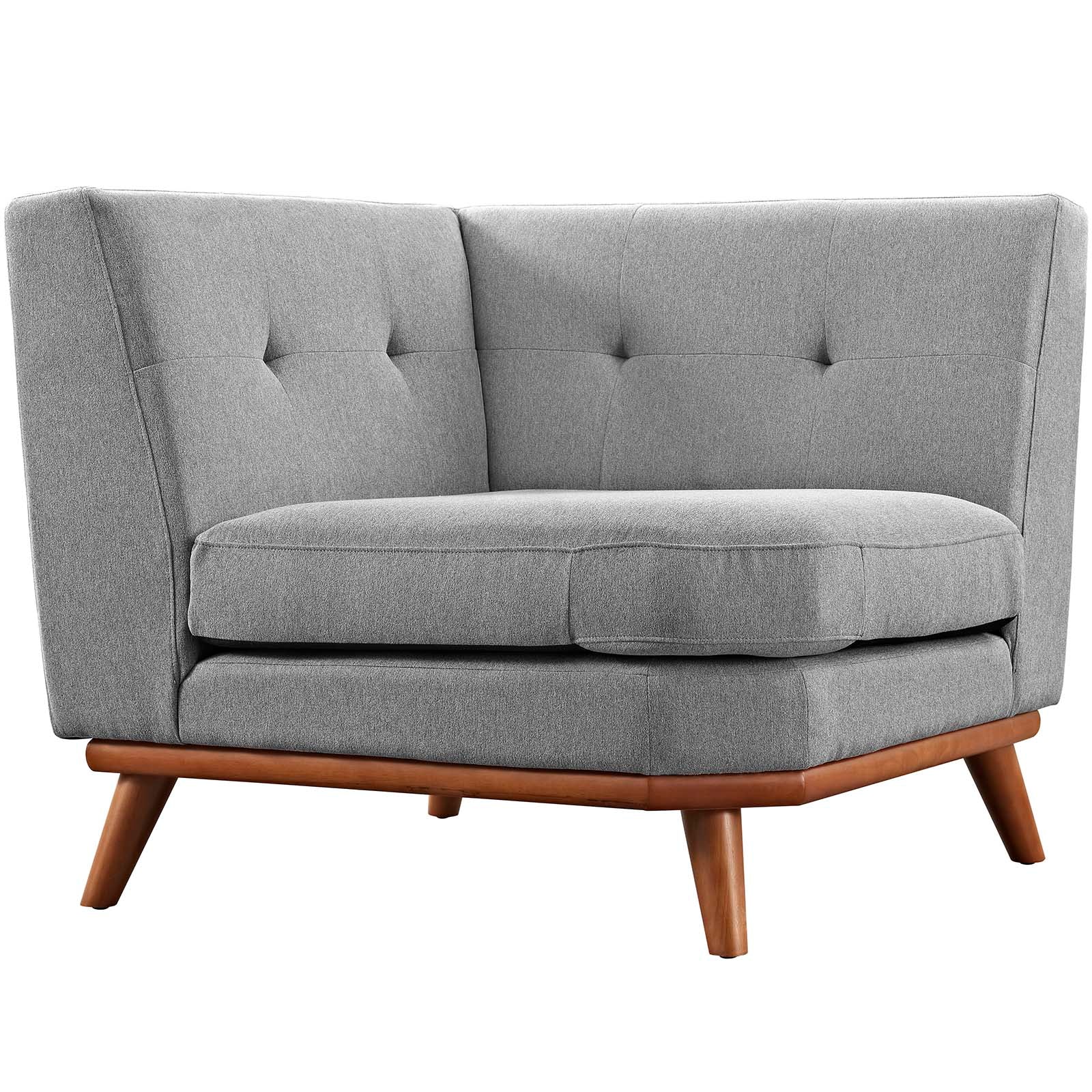 Gently sloping curves and plush cushions create a favorite lounging spot. Whether relaxing after a long day at work, settling in with coffee and brunch, or entering a spirited discussion with friends, the Engage corner piece is a welcome presence in your home. Four tufted buttons create eye-catching appeal, adding depth that brings your seating décor to center stage. Rubberwood legs and frame supply a solid base to this quality upholstered fabric piece.