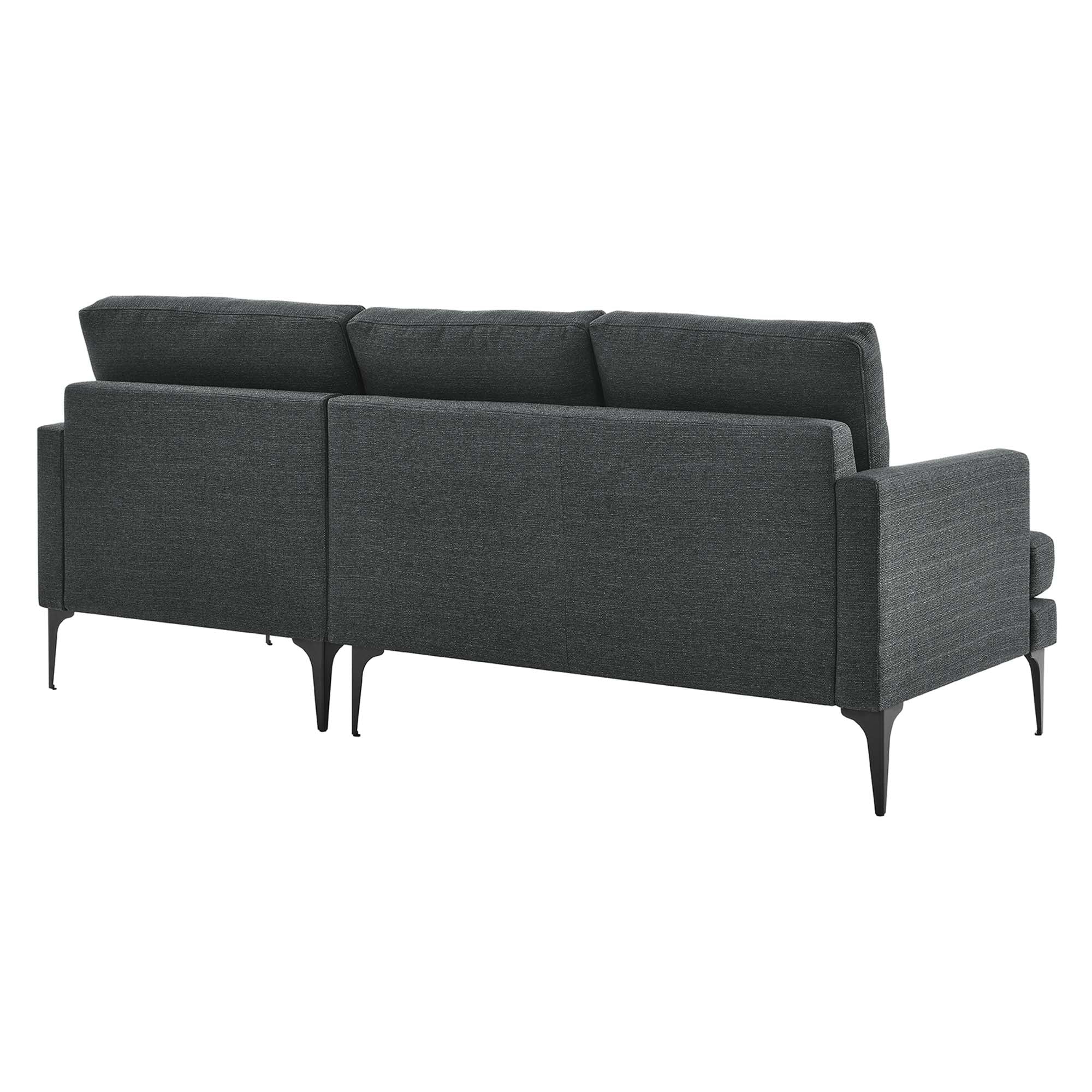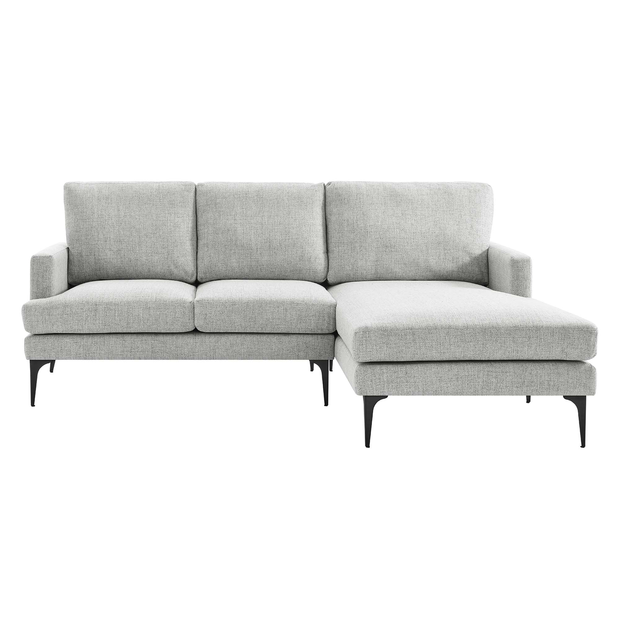 Abounding in luxe modernity, the Evermore Fabric Upholstered Right-Facing Sectional Sofa delivers tailored elegance, soft texture, and a deep, comfortable seat to your living room, bedroom, lounge room, or home office. This upholstered sectional sofa with right-facing chaise lounge is covered in soft yet durable polyester fabric and padded in dense foam to offer a premium seating experience. The cushions are removable and feature zippered covers for easy cleaning. Resting on metal legs with non-marking foot pads, this upholstered couch makes a glam deco statement in the modern home or apartment. Assembly required. Weight Capacity: 992 lbs.