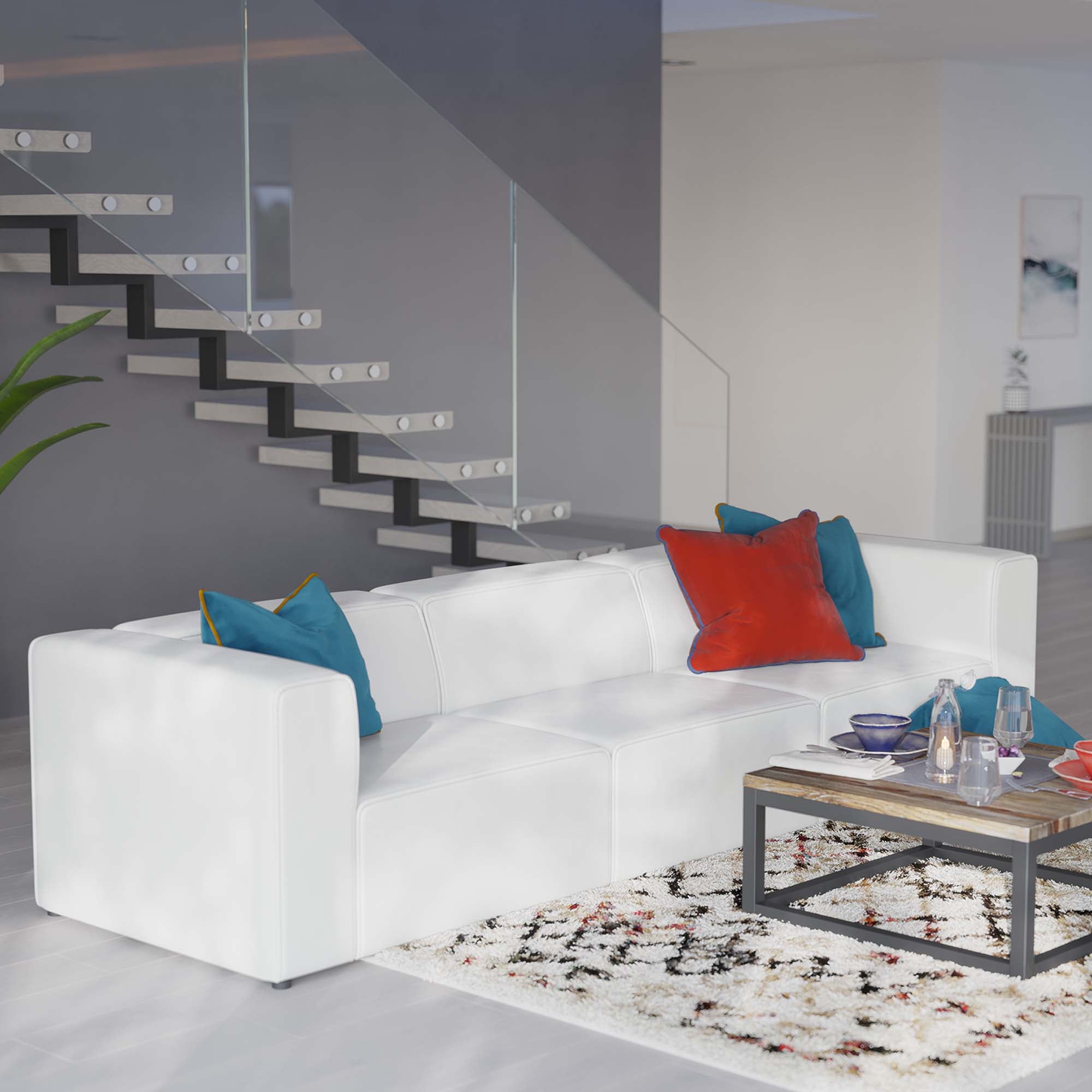 Kick back and relax with the Mingle Vegan Leather 3-Piece Sectional Sofa. Designed to wash away the hindrances that obstruct visual space, this three-seater sofa comes expansively designed with generous seating and dense foam padding that allows for just the right amount of giving. Mingle easily positions according to the needs of the moment and features rich vegan leather upholstery with elegant piping and plastic legs for steady support. Host animated living or lounge room get-togethers with a modular sectional seating assortment perfect for contemporary modern décors.