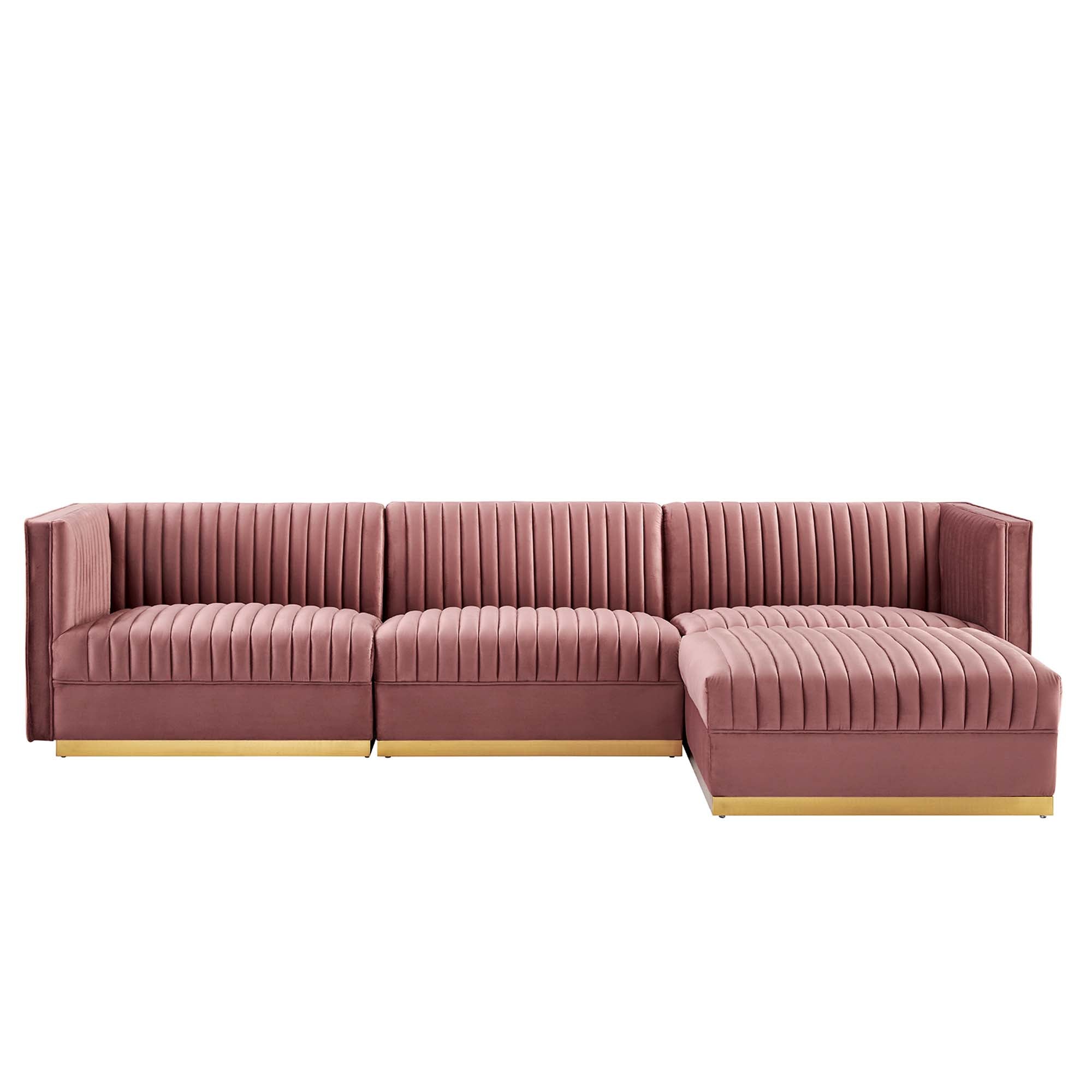 Sanguine 4-Piece Channel Tufted Performance Velvet Modular Sectional Sofa in Dusty Rose