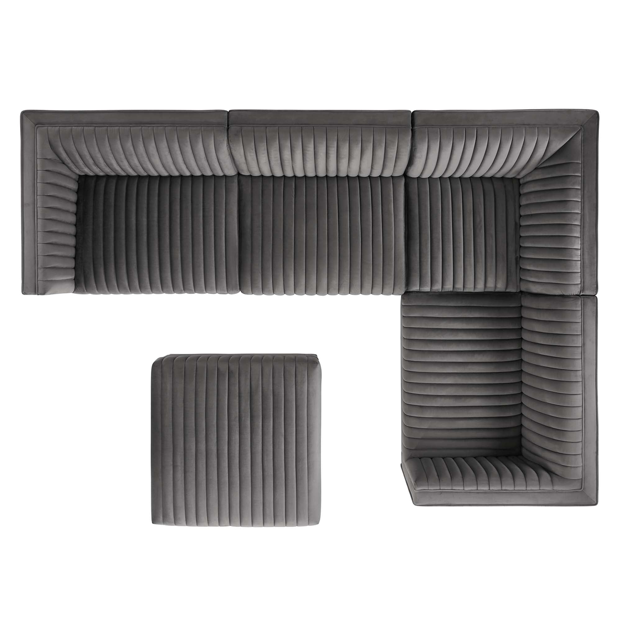 Sanguine 5-Piece Channel Tufted Performance Velvet Right-Facing Modular Sectional Sofa in Dusty Rose