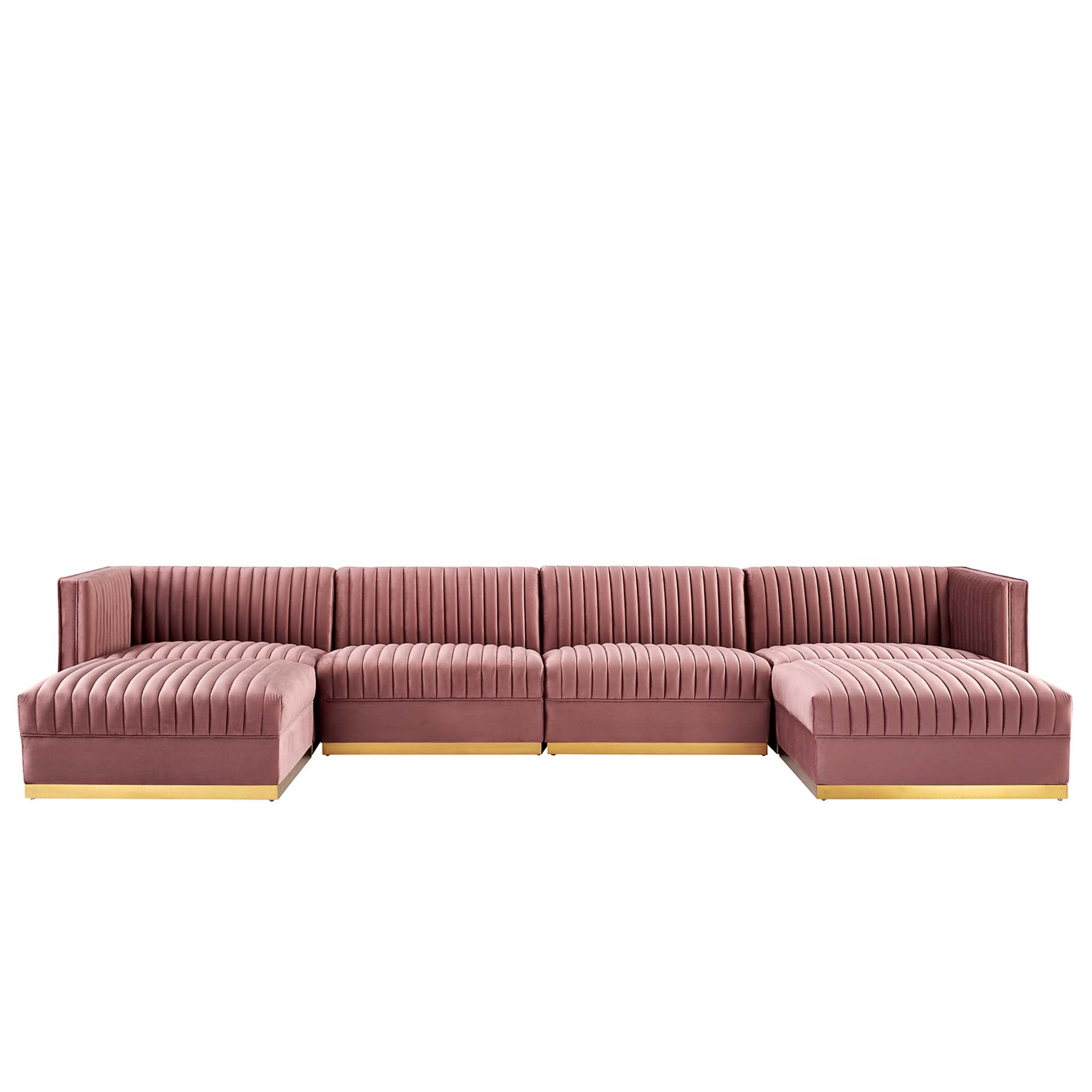 Sanguine 6-Piece Channel Tufted Performance Velvet Modular Sectional Sofa in Dusty Rose