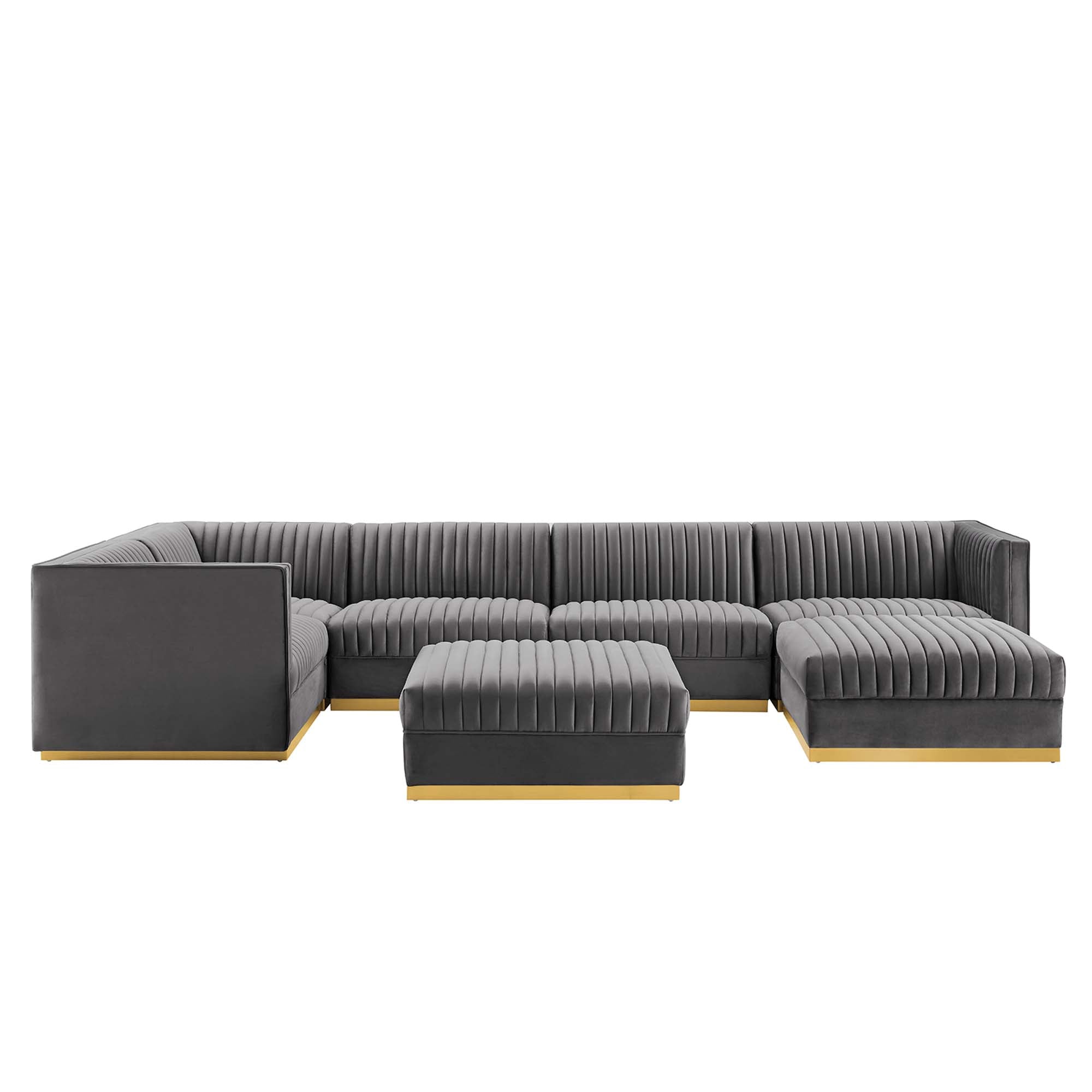 Sanguine 7-Piece Channel Tufted Performance Velvet Left-Facing Modular Sectional Sofa in Dusty Rose
