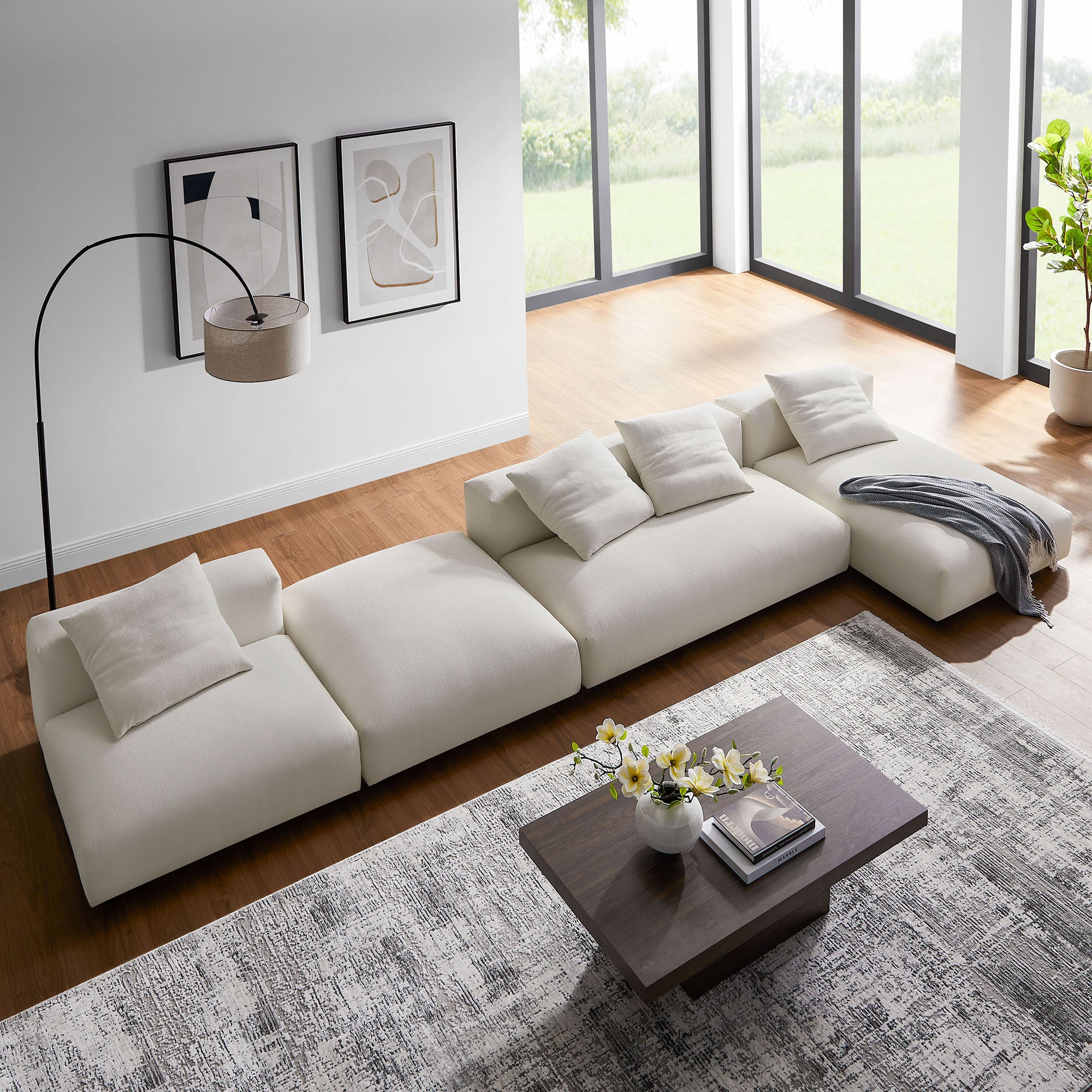 Solace 4-Piece Modular Upholstered Fabric Sectional Sofa With Ottoman in Linen