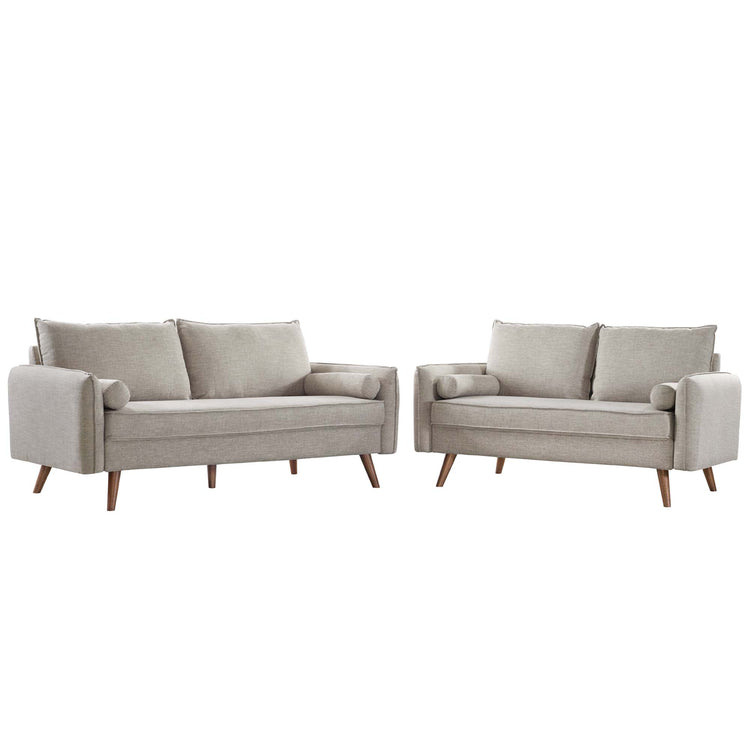 Give new vitality to your home or apartment living space with Revive Sofa and Loveseat Set. With a comfortable yet tailored profile and matching bolster pillows, Revive beckons guests to sit and stay a while. Its soft fabric upholstery grants this sofa an approachable appeal that’s echoed by its clean lines and splayed wood legs. Arriving directly to your doorstep in a convenient shipping box, Revive easily unpacks to quickly become the most well-loved lounge spot in your home.Sofa Weight Capacity: 1323 lbsLoveseat Weight Capacity: 880 lbs