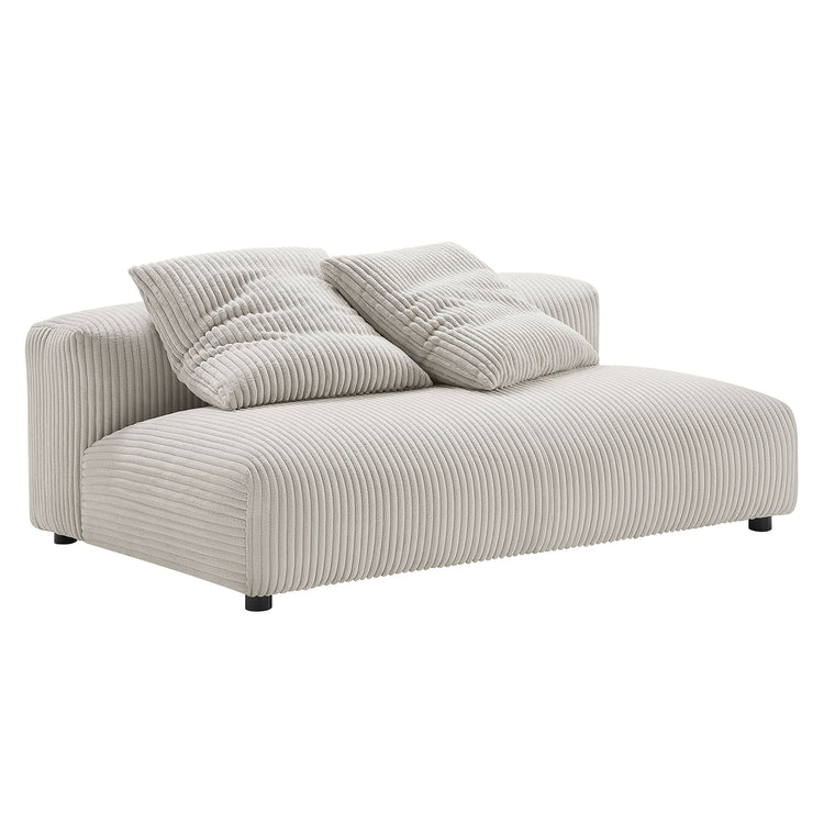 Revel in ultimate comfort and modern style with the Solace Modular Corduroy Armless Loveseat and Ottoman Set. This oversized corduroy armless loveseat with a matching ottoman is perfect for any living room, offering endless flexibility. Its modular furniture design allows you to change the arrangement to suit the needs of the moment or expand your seating by adding more pieces in the future. Featuring a sturdy frame, dense foam padding, and a sinuous spring support system, the Solace Small Sofa Couch grants a premium seating experience. The comfy corduroy upholstery adds a cozy, casual vibe, making this armless two-seater sofa a perfect addition to any living space or lounge area. Equipped with non-marking plastic glides and complementing accent pillows, this loveseat sectional is both stylish and practical. With no assembly required, you can enjoy immediate relaxation with this loveseat sofa with ottoman set. Loveseat Weight Capacity: 800 lbs., Ottoman Weight Capacity: 500 lbs.
