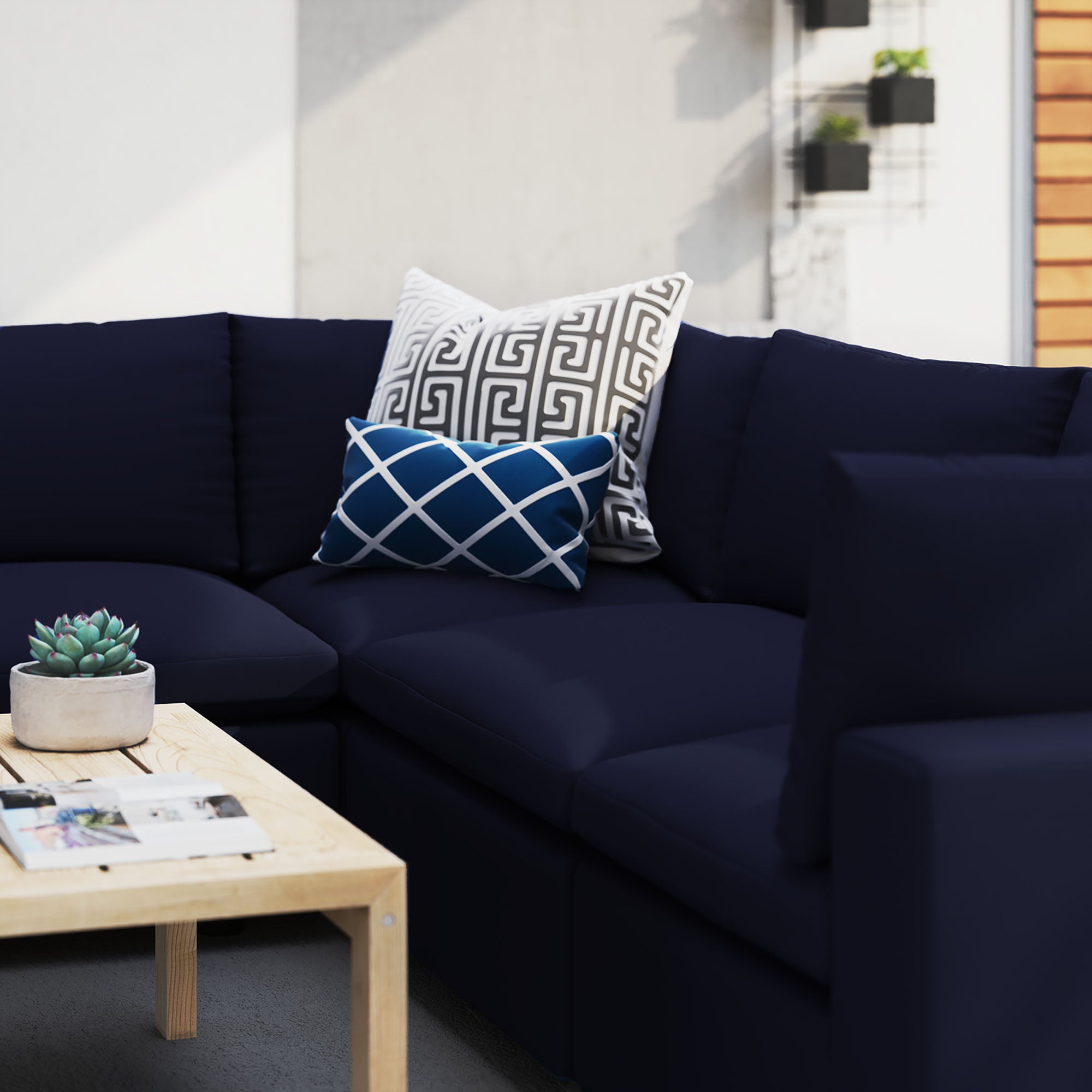 A haven for cozy relaxation right in your own backyard, Commix features plush comfort, a clean-lined design, and a spacious profile that makes an attractive statement on the porch, patio, or by the poolside. Made for sprawling out in the sun or curling up with a good book, this outdoor patio sectional sofa features generously padded cushions covered in water-repellent, UV-resistant Sunbrella® fabric covers making them ideal for your outdoor space. This outdoor sectional sofa features an all-weather construction with a powder-coated aluminum frame and non-marking foot caps to protect flooring surfaces. Beckoning guests to sit and stay a while, the Commix Outdoor Patio Collection is perfect for al fresco entertaining or lounging amidst warm weather. Set Includes: 2 Armless Chairs, 3 Corner Chairs. Each Chair Weight Capacity: 300 lbs.