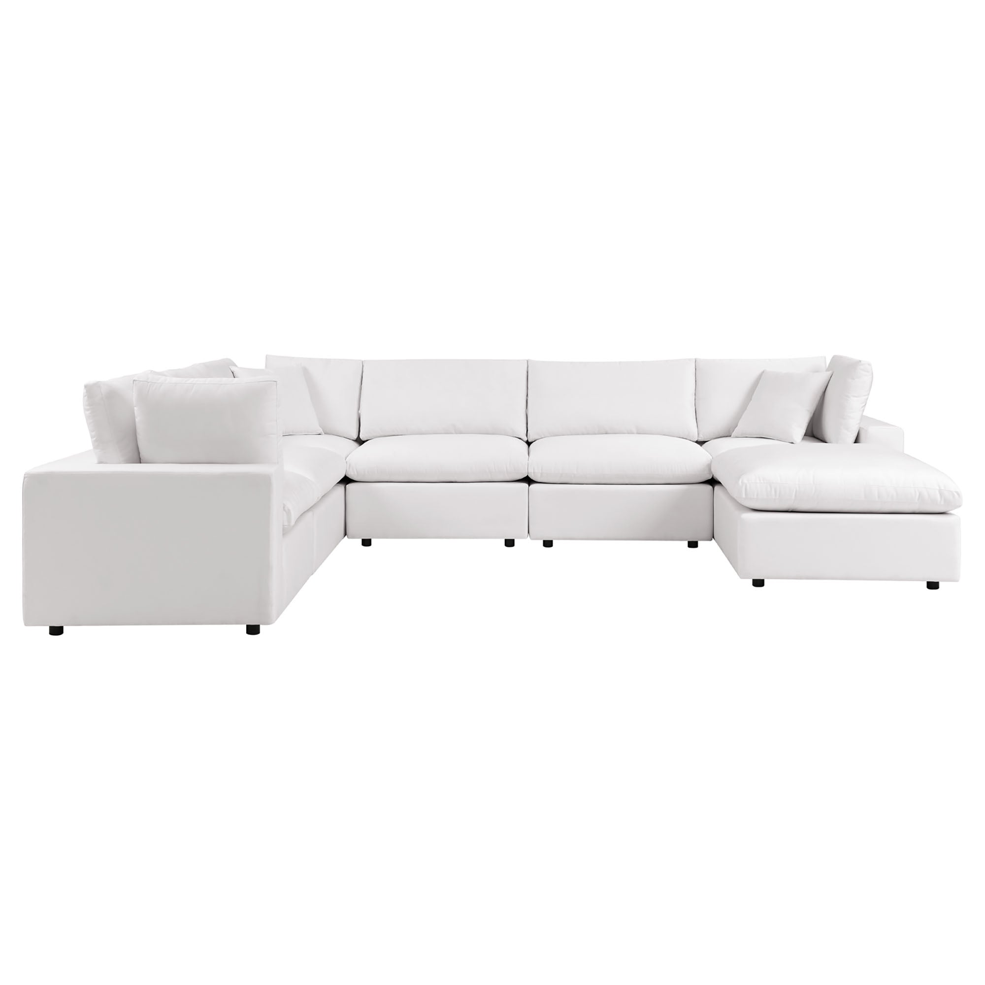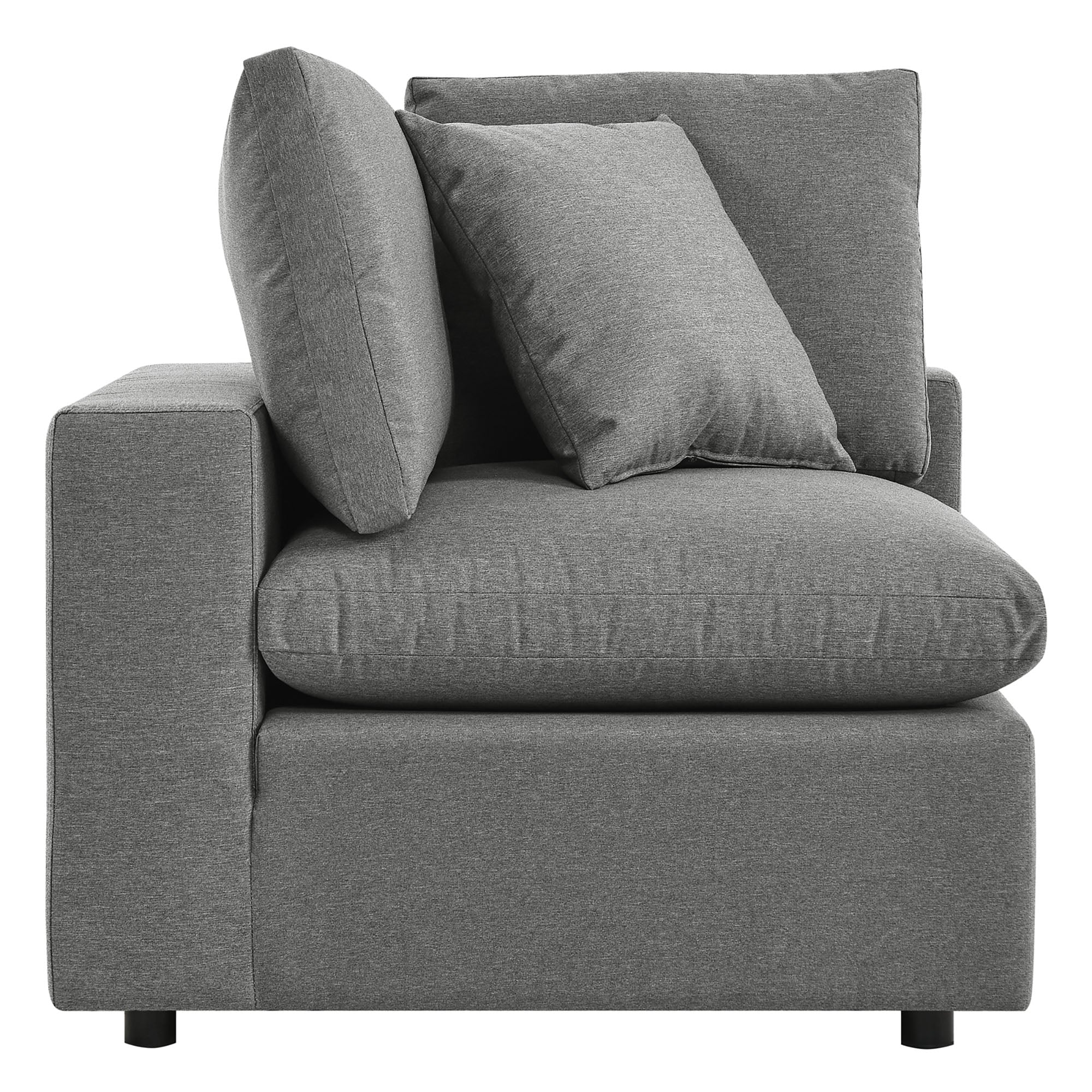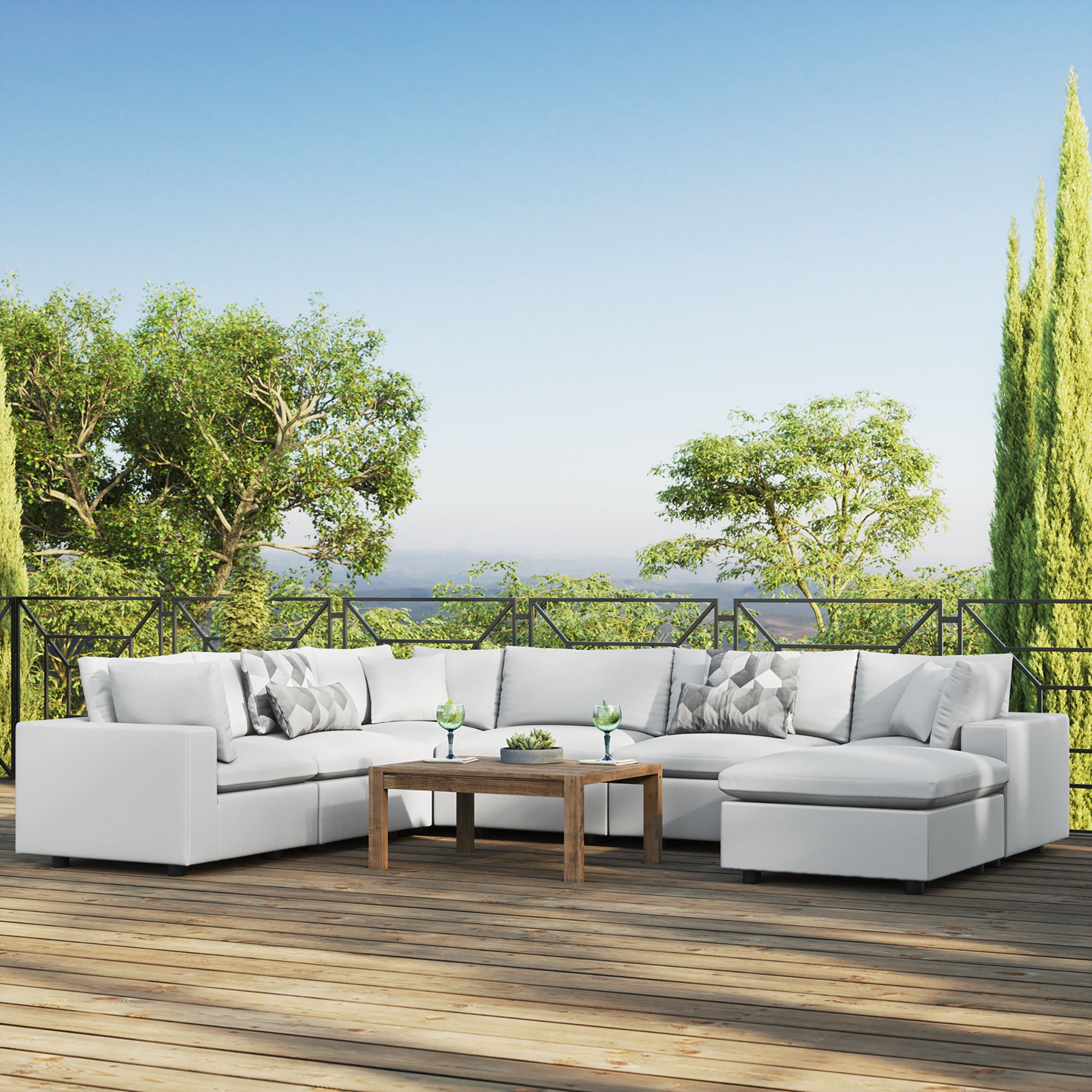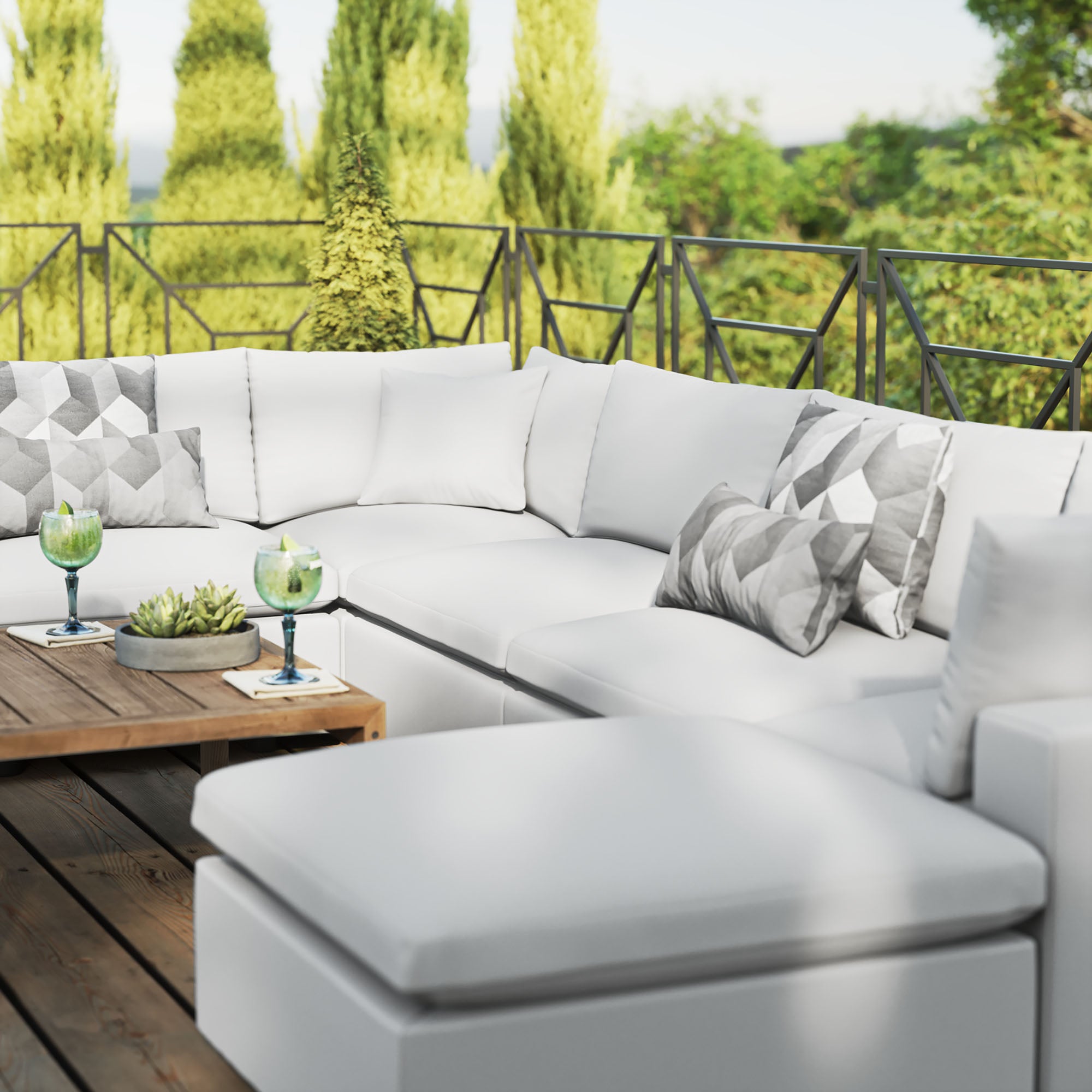 A haven for cozy relaxation right in your own backyard, Commix features plush comfort, a clean-lined design, and a spacious profile that makes an attractive statement on the porch, patio, or by the poolside. Made for sprawling out in the sun or curling up with a good book, this outdoor patio sectional sofa features generously padded cushions covered in water-repellent, UV-resistant covers making them ideal for your outdoor space. This outdoor sectional sofa features an all-weather construction with a powder-coated aluminum frame and non-marking foot caps to protect flooring surfaces. Beckoning guests to sit and stay a while, the Commix Outdoor Patio Collection is perfect for al fresco entertaining or lounging amidst warm weather. Set Includes: 3 Armless Chairs, 1 Ottoman, 3 Corner Chairs. Each Chair Weight Capacity: 300 lbs.
