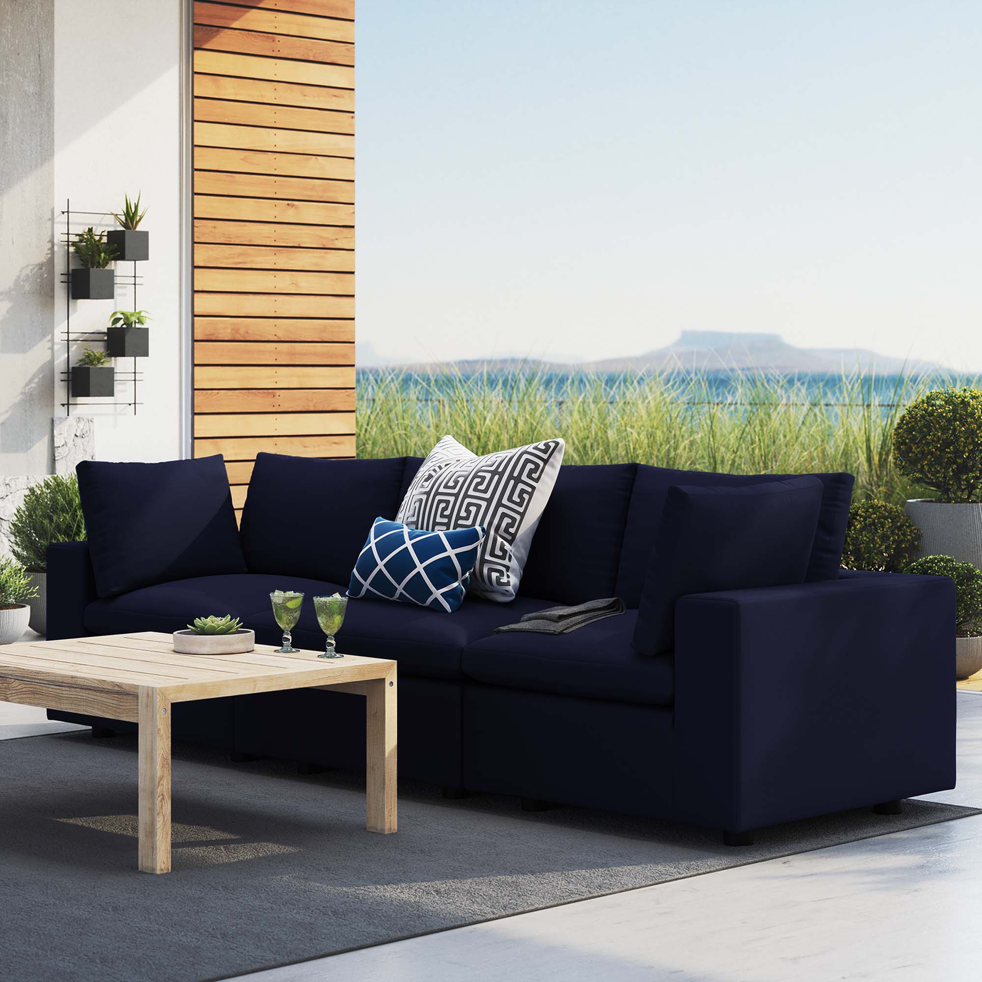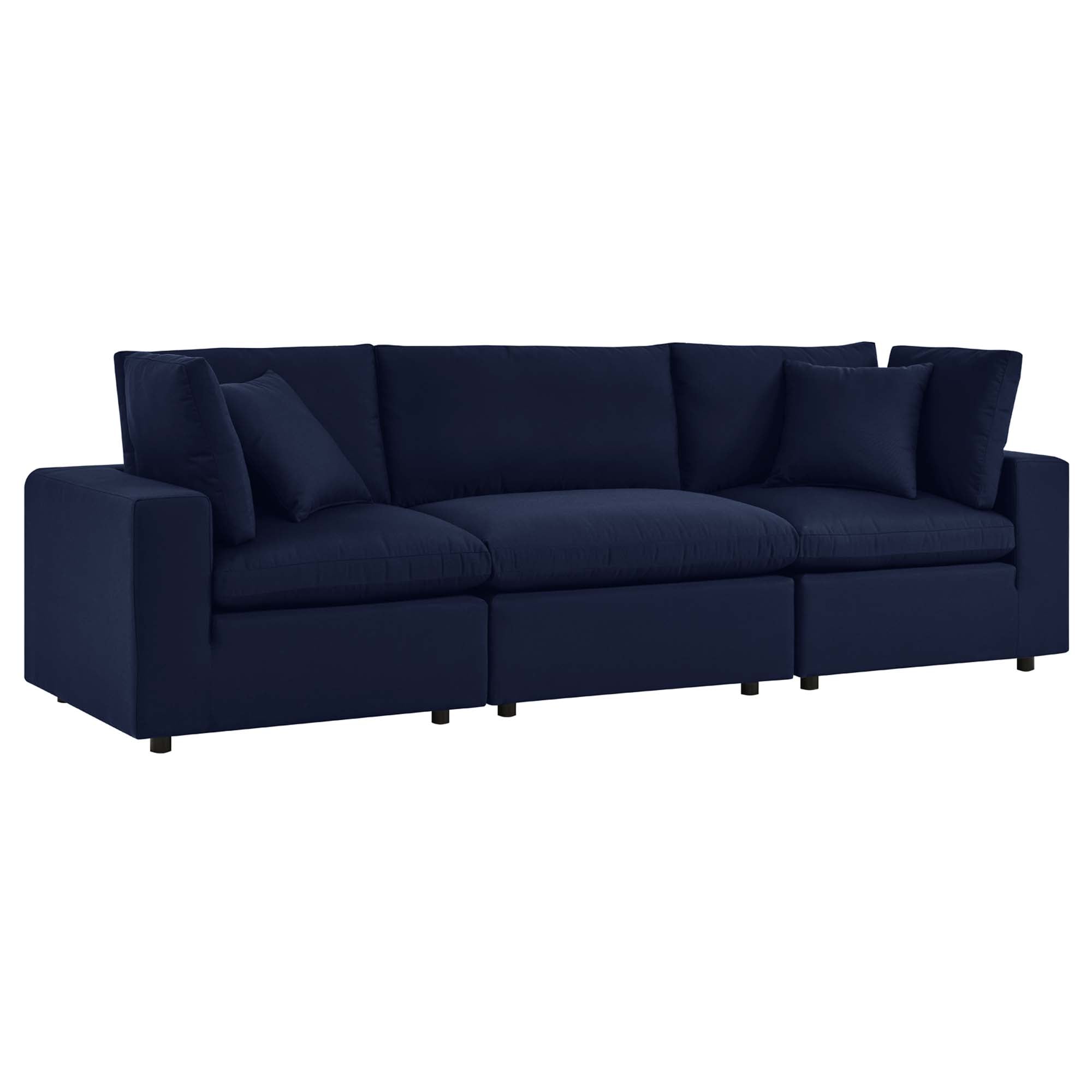 A haven for cozy relaxation right in your own backyard, Commix features plush comfort, a clean-lined design, and a spacious profile that makes an attractive statement on the porch, patio, or by the poolside. Made for sprawling out in the sun or curling up with a good book, this patio sofa features generously padded cushions covered in water-repellent and UV-resistant Sunbrella® fabric covers making them ideal for your outdoor space. This outdoor three-seater sofa features an all-weather construction with a powder-coated aluminum frame and non-marking foot caps to protect flooring surfaces. Beckoning guests to sit and stay a while, the Commix Outdoor Patio Collection is perfect for al fresco entertaining or lounging amidst warm weather. Each Seat Weight Capacity: 300 lbs.