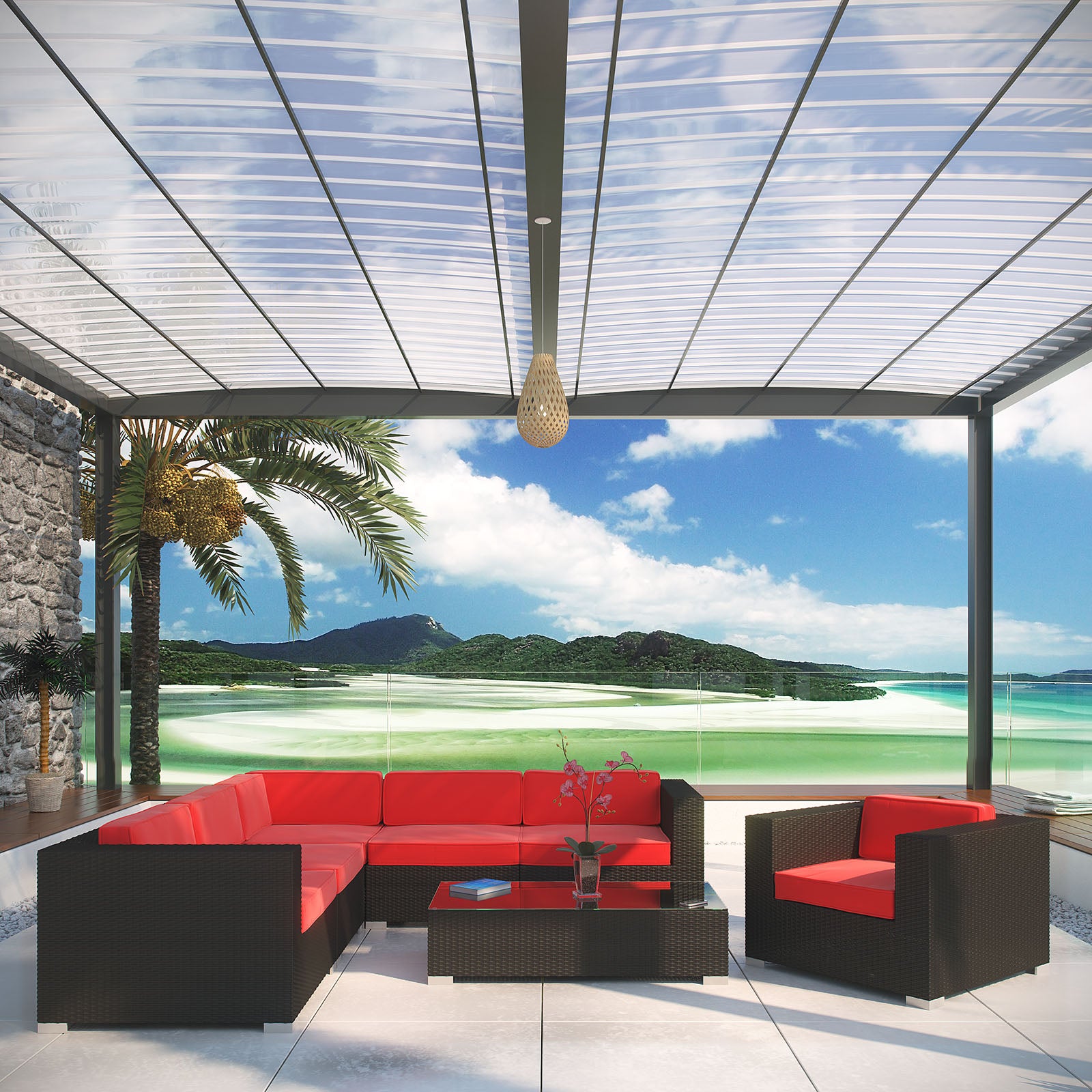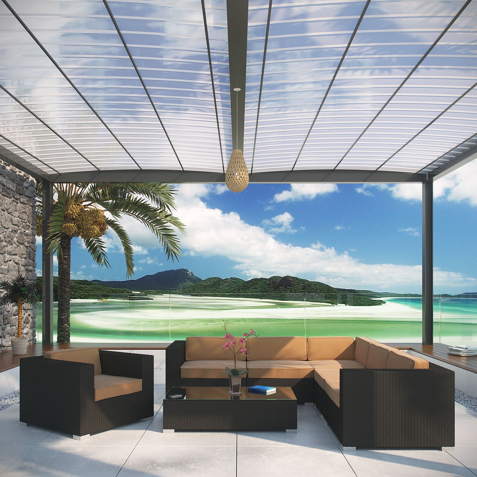 Stages of sensitivity flow naturally with Corona's robust seating experience. Find meaning among cliffs and caverns as you become the agent of influence in the espresso rattan base and all-weather beige fabric cushion sectional set. Open yourself to splendorous insights as you impart positivity among friends and family.