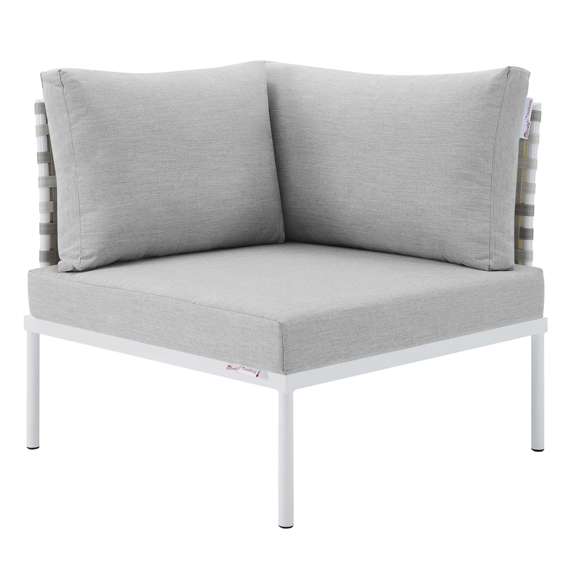 Harmony Sunbrella® Basket Weave Outdoor Patio Aluminum Corner Chair in Taupe Gray