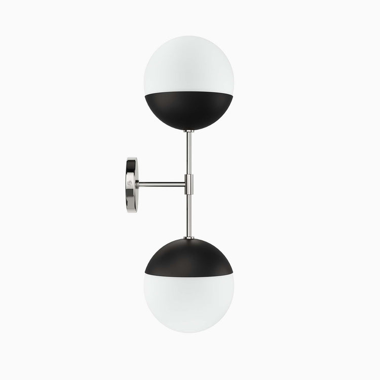 Cast a warm, ambient glow around your home or apartment with the Stellar Wall Sconce. Adding contemporary charm to a hallway, dining room, bedroom, office, entryway, or other living space, this spherical light fixture features a frosted glass shades that attaches to a matte black metal bases. Affixed to the wall by a round backplate, this wall light requires two E26 bulbs 60W max or LED equivalent (not included). UL Listed for Damp Locations. Luminaires that are “Suitable for Damp Locations” are approved for areas that are regularly exposed to moisture and condensation like the bathroom. Professional installation required.