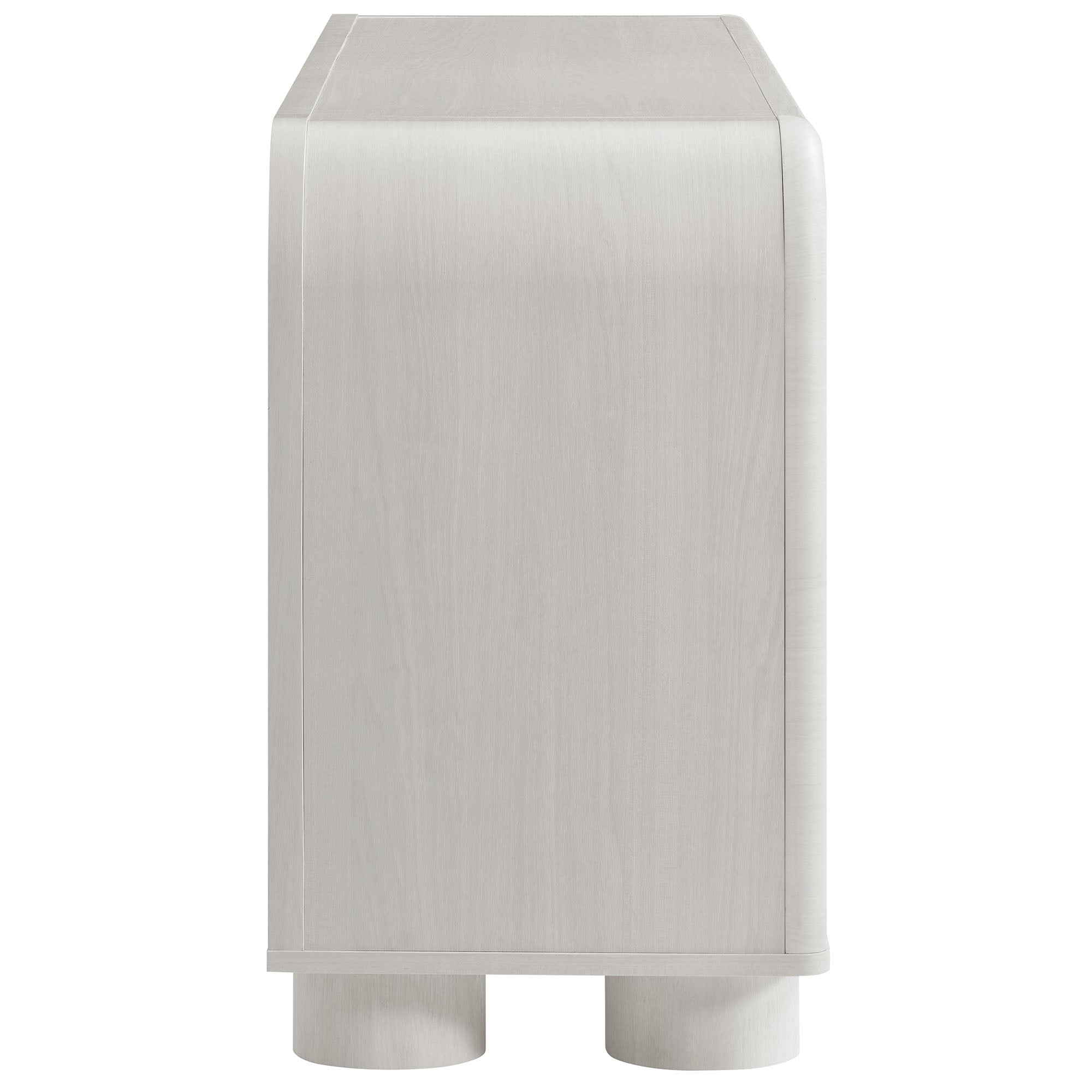Blending contemporary design with functional elegance, the Bellamy Sideboard Cabinet creates a refined storage solution for dining rooms, living spaces, and entryways. Featuring a gracefully curved silhouette, this modern buffet cabinet makes a stylish statement while offering ample space for organizing dinnerware, linens, household items, or as a TV stand for wall-mounted TVs. Crafted with a beautiful wood grain finish, this storage cabinet is designed with distinctive elongated handle pulls and unique rounded feet, adding a touch of modern sophistication. The soft-close doors open to reveal an adjustable shelf, allowing for customizable storage options. Thoughtfully designed with non-marking floor glides for stability and floor protection, this versatile rounded cabinet is perfect for any space. Assembly required.