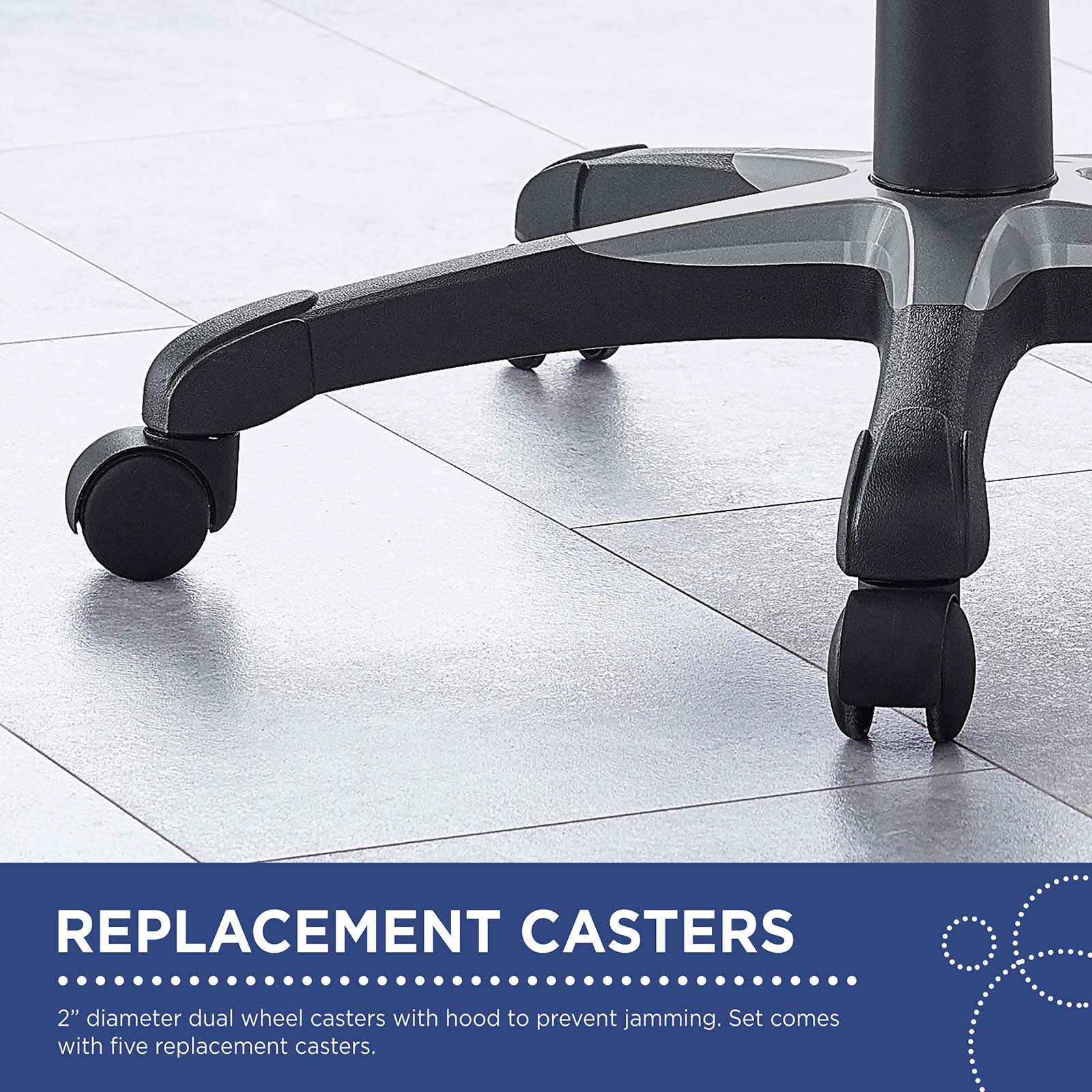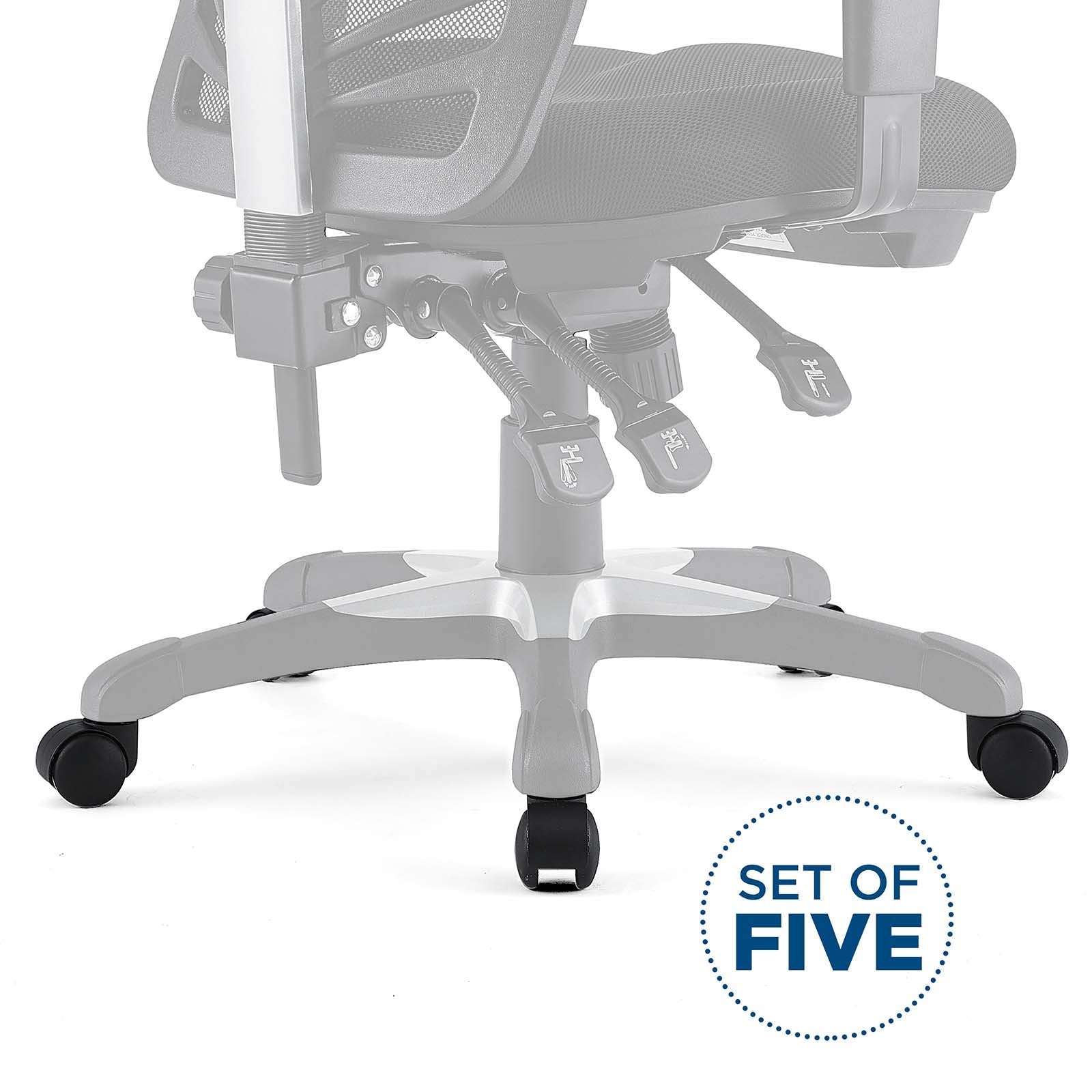Sometimes parts wear out. That's why Modway is offering customers the option to order a set of 5 office chair casters to replace commonly worn out parts. Whether your office chair is out of warranty or you simply want an extra set on hand. The set includes 5 casters and shipping is included in the price.