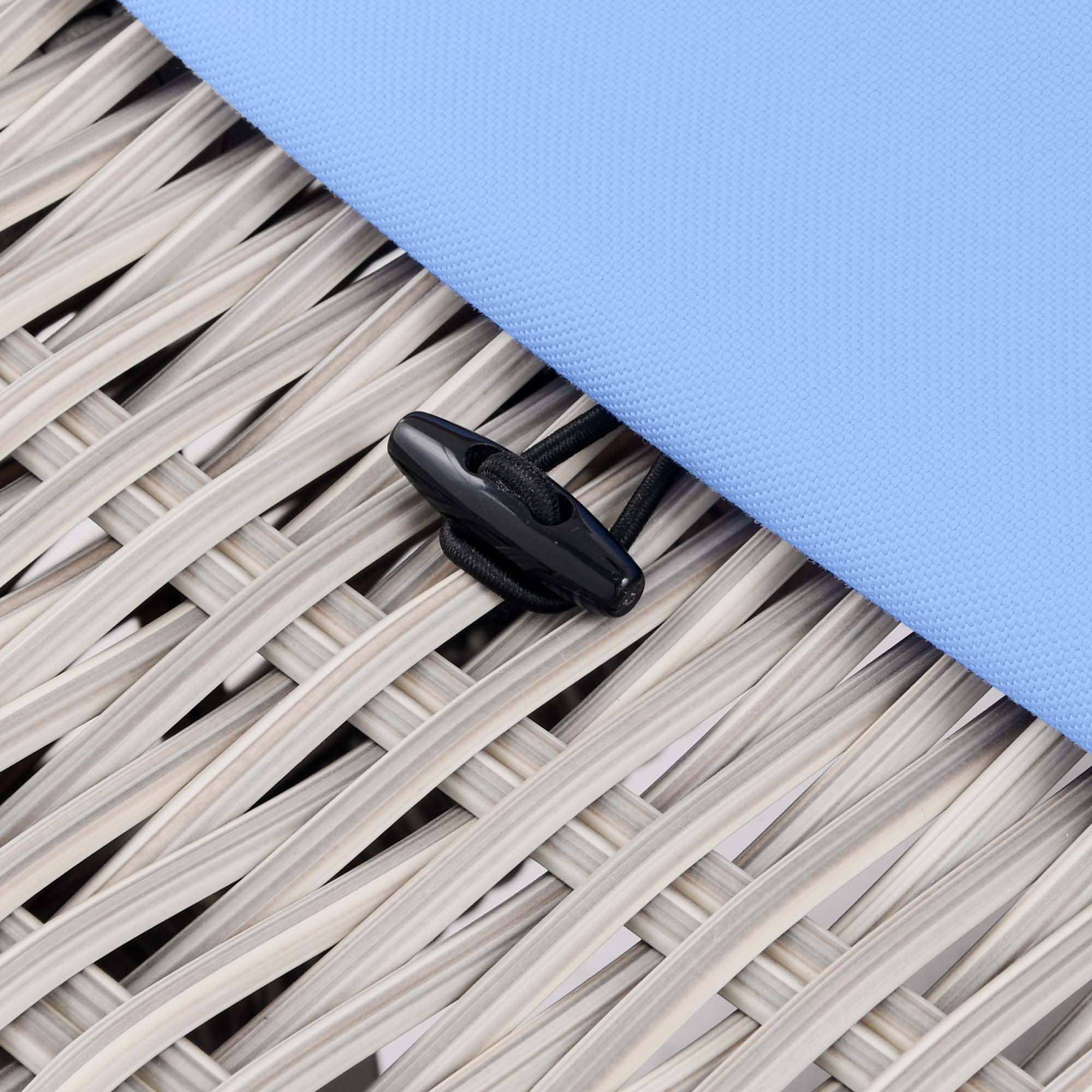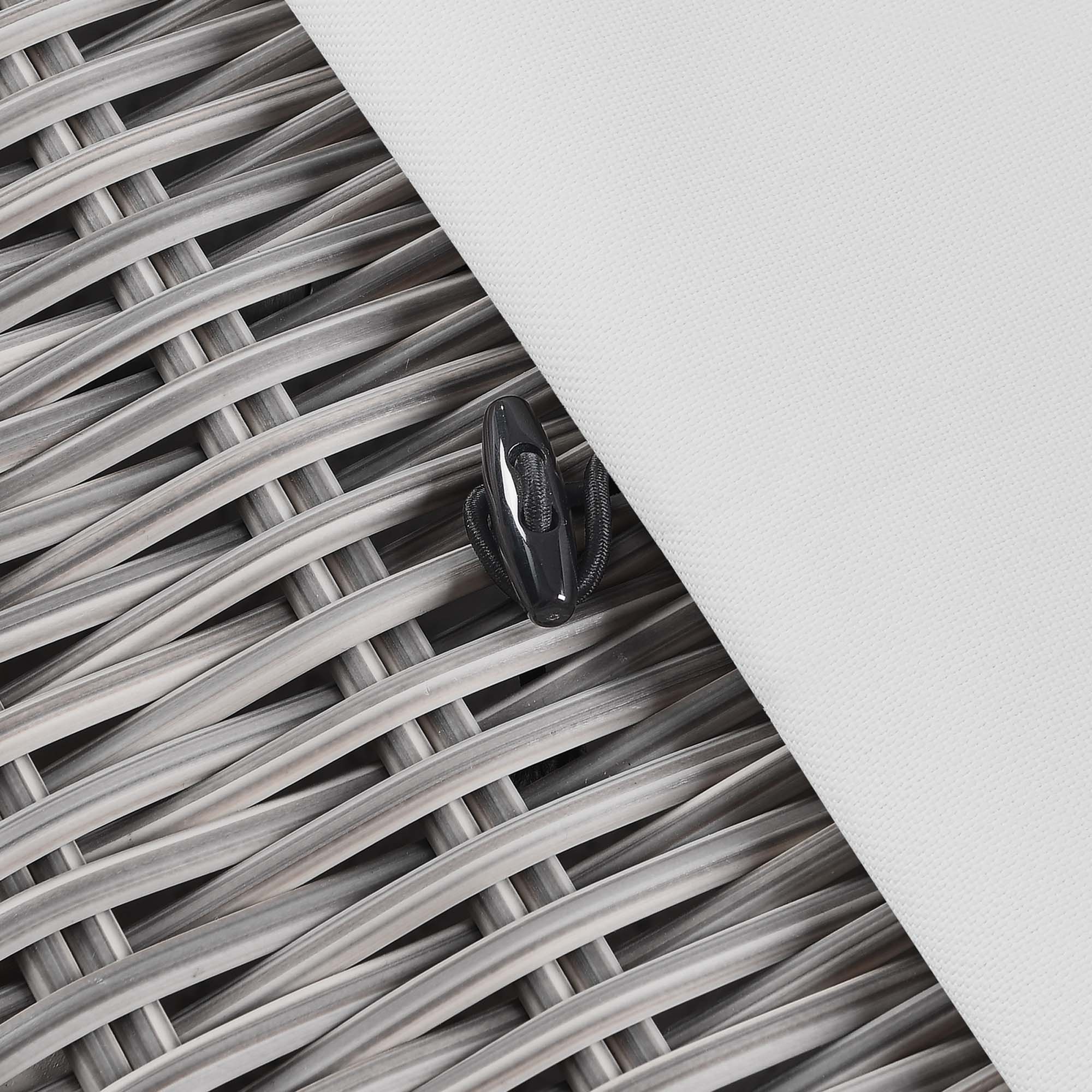 Enjoy fresh air and alfresco relaxation with the Conway Outdoor Patio Wicker Rattan Ottoman. Wrapped in UV-resistant light gray synthetic wicker rattan, this patio ottoman boasts organic texture and a neutral hue that brings a calming presence to your outdoor space. The frame of this outdoor ottoman is crafted with durable powder-coated aluminum and rests on L-shaped legs with plastic foot glides. A thick foam padded cushion covered with a removable, water-resistant polyester cover offers a comfortable seat and affixes securely to the ottoman with a cord tension attachment. Trending aesthetics and a classic design define this outdoor patio furniture collection making it a beautiful addition to any outdoor space including the backyard, patio, porch, balcony, or poolside. Assembly required. Patio Ottoman Weight Capacity: 300 lbs.