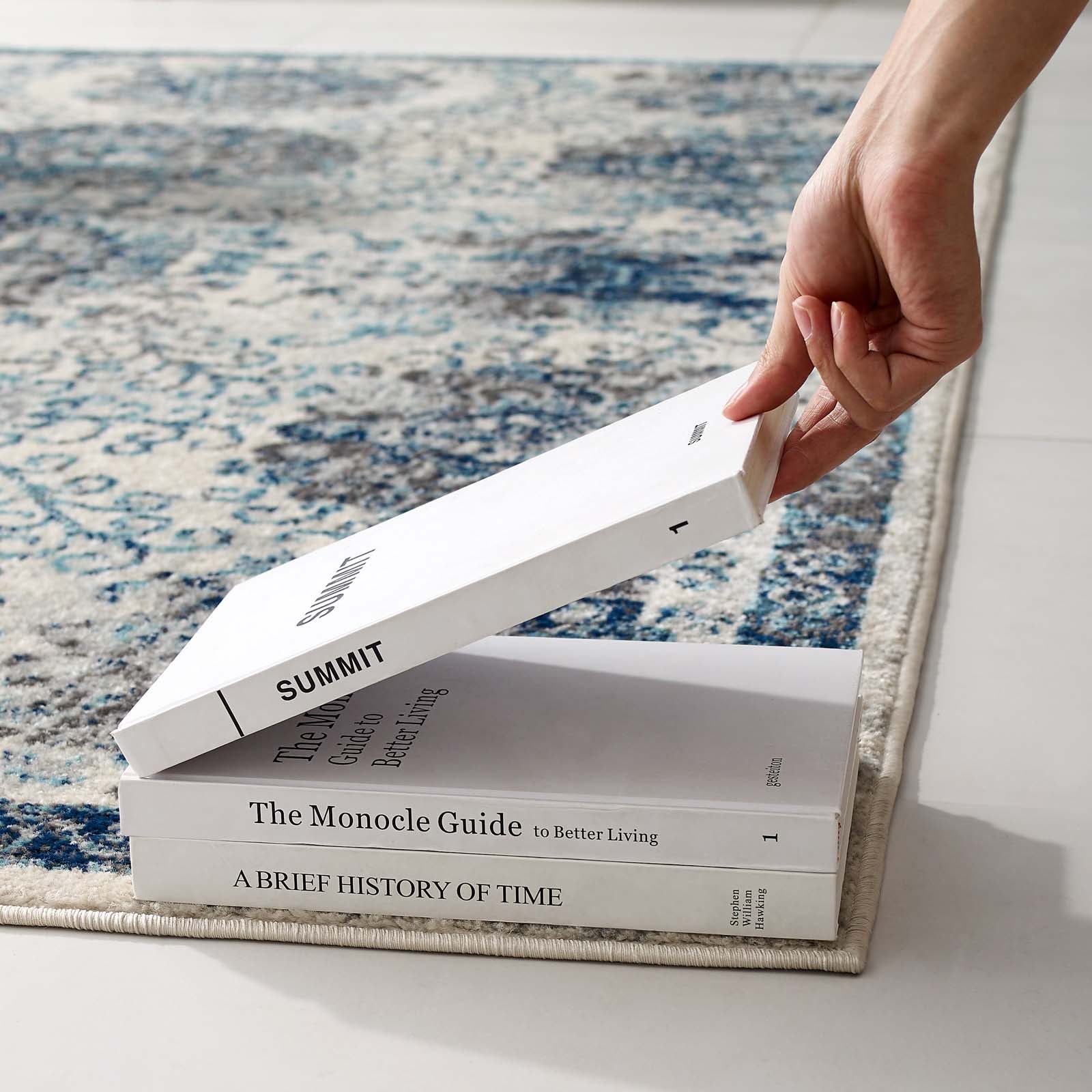 Entourage Kensie Distressed Floral Moroccan Trellis 8x10 Area Rug in Ivory and Blue