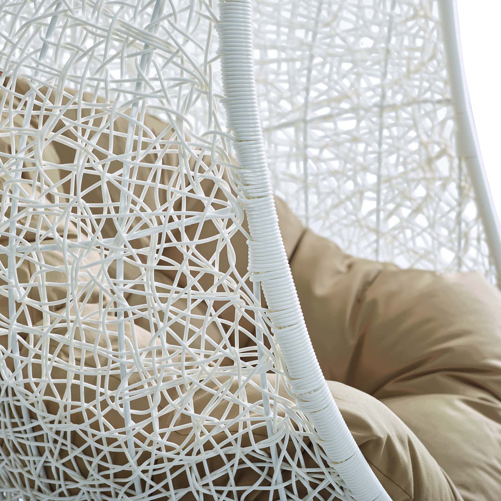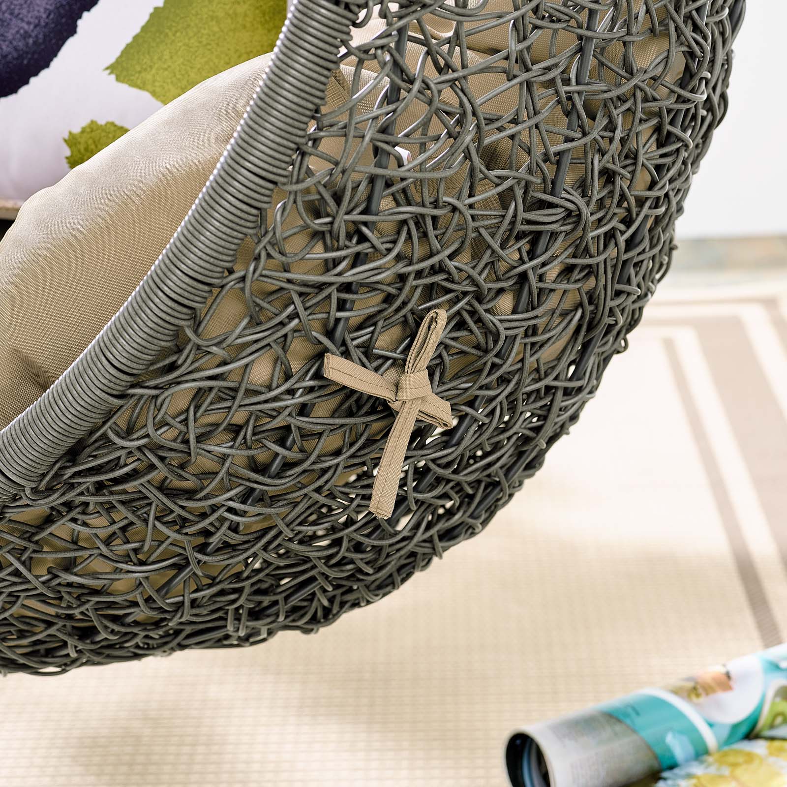 Escape to an exotic island of serenity with the Hide Outdoor Patio Swing Chair. Made with a luxurious synthetic rattan weave and plush all-weather fabric cushion, Hide Outdoor Hanging Chair makes it easy to immerse yourself in a good book. Hide Patio Swing Chair comes with a sturdy powder-coated steel frame and hanging chain apparatus that works well to enliven your patio, backyard, porch, or poolside décor. Stand-alone swing hammocks are also popularly used in indoor lounge, living, or bedroom spaces. Hide Swinging Chair is weather and UV resistant.