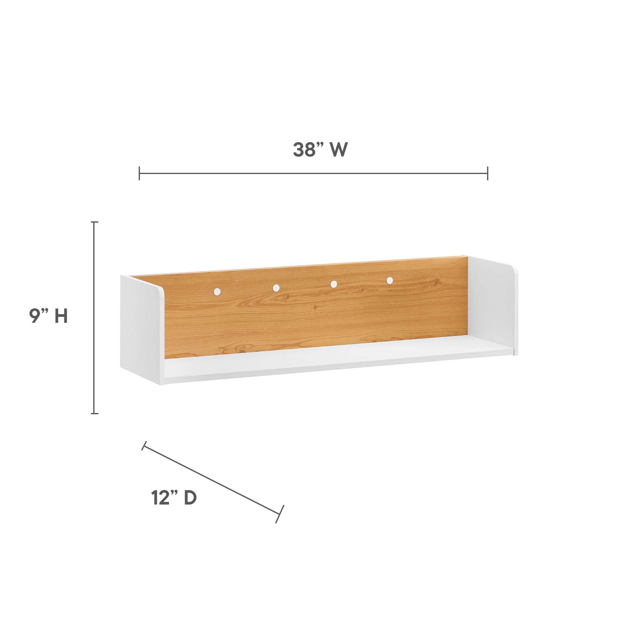 A perfect workspace for the home office, college dorm, bedroom, living room, or any other work area, the 3-Piece Kinetic Wall-Mount Office Furniture Set introduces style and function to the modern home or apartment. Crafted from durable, lightweight particleboard with a complementing melamine top, this office desk features a spacious work area and flip-up cable management compartment to keep things neat and organized while the wall-mount storage cabinet is complete with magnetic-close doors to conceal its shelved storage area. With an organic wood grain design, this wall-mount office desk, storage cabinet, and accent shelf brings natural elegance to any space and mounts directly to the wall to save valuable floor space. Assembly required.