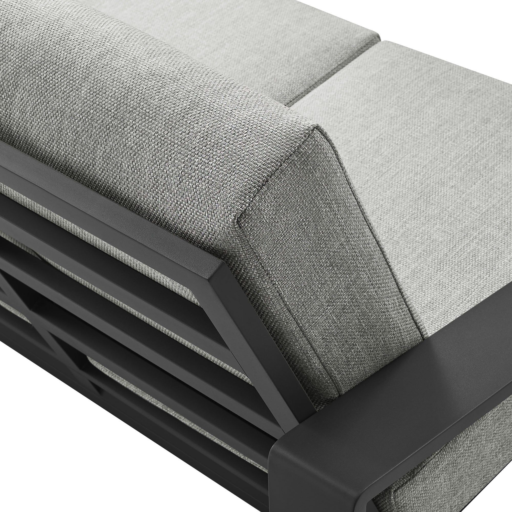 Unwind in sculptural sophistication with the Lirienne Outdoor Patio Loveseat. Designed for modern relaxation, this statement-making 2-seater sofa showcases a sleek, rectangular frame crafted from durable powder-coated aluminum, offering both resilience and style. The deep, angled seat and plush foam cushions invite you to sink into lasting comfort, while the smooth, weather-resistant upholstery is stain-resistant and easy to maintain with removable, washable covers. The Lirienne Aluminum Small Outdoor Couch is as practical as it is stylish, making it the perfect outdoor retreat for backyard lounging. Whether placed on a sun-drenched deck or a shaded patio, this outside couch brings an air of refined ease to any alfresco setting. Weight Capacity: 501 lbs.