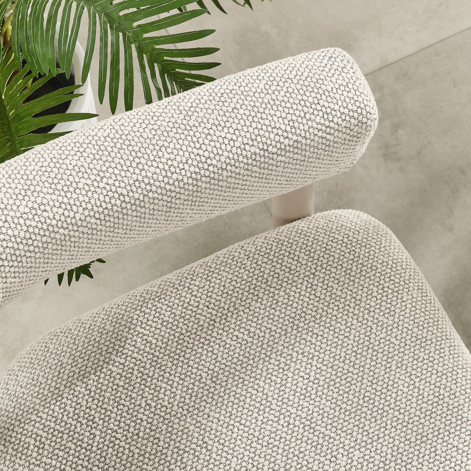 Elevate your outdoor space with the Nautica Modern Contemporary Patio Dining Armchairs Set of 2. Crafted from powder-coated metal, these aluminum outdoor dining chairs combine durability with sleek design. The curved back and sleek tubular frame offer a perfect blend of comfort and style, making them standout patio chairs in any setting. Designed for all weather conditions, these outdoor dining chairs feature quick-drying dense foam padding and water-resistant fabric upholstery. Non-marking plastic foot glides protect your flooring, making these aluminum outdoor chairs ideal for any surface. Whether you need seating for your outdoor dining table, balcony, or stylish patio setup, the Nautica Fabric Upholstered Metal Armchairs Set of 2 is your go-to choice for exceptional outdoor seating. Enhance your patio, porch, or garden with this versatile aluminum patio furniture collection, and enjoy comfort and style all year round. No assembly required. Weight Capacity of each aluminum patio chair : 300 lbs.