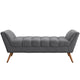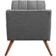 Embrace leisure time with the artfully designed Response Collection. Exquisitely crafted with a tufted seat and back, gently sloping arms, and adorable design, Response comes well-loved for all the right reasons. Dense foam padding ensures comfort, while the well-orchestrated style will energize your space. Tapered wood legs with non-marketing foot caps finish off this piece of distinction and estimable appeal.
