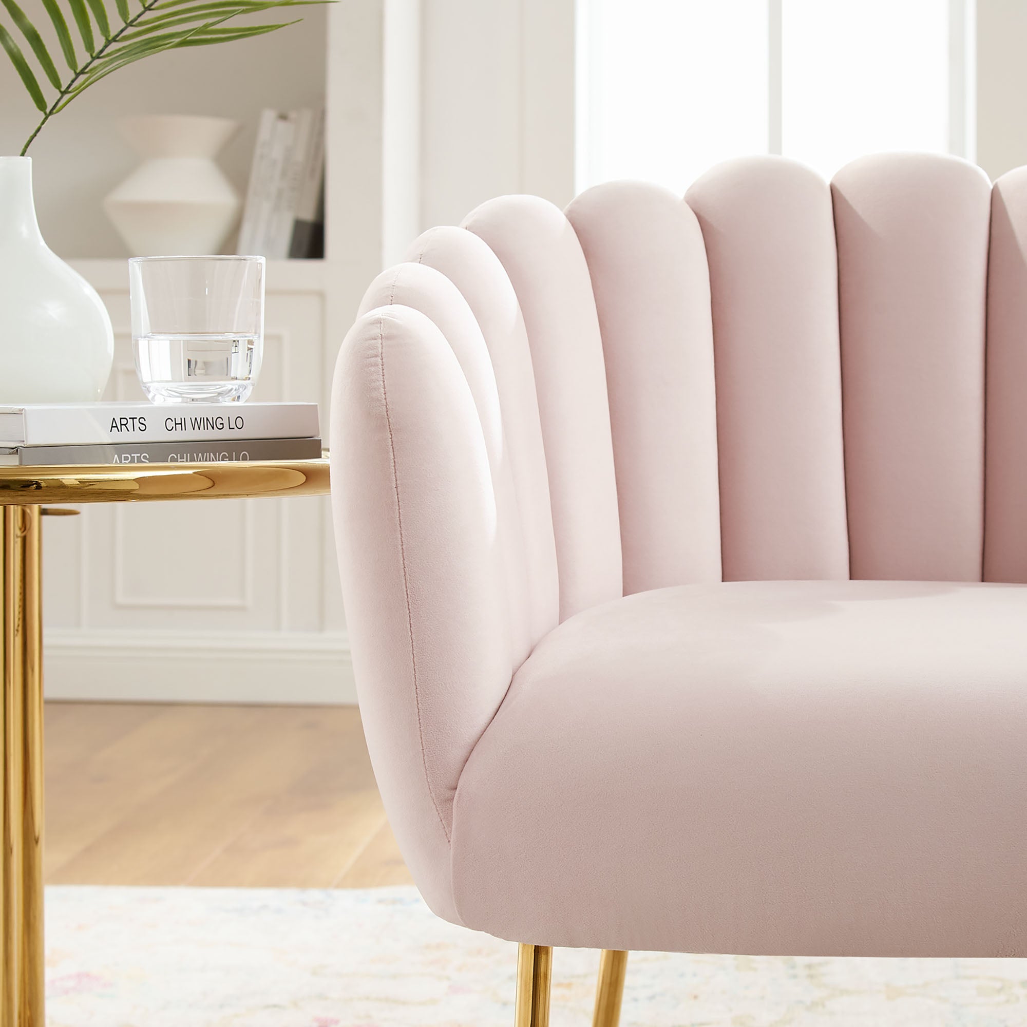 Fashioned with vertical channel tufting, artfully arranged into a welcoming arched frame, the Sanna Performance Velvet Armchair distinguishes with retro glam appeal in mid-century modern or eclectic decors. Dare to enchant and inspire in your living room, bedroom, or lounge area with this elite velvet accent chair. Sanna dispenses immense comfort with dense foam padding and a webbed support system. Upholstered in stain-resistant performance velvet and fitted with non-marking foot glides, the Sanna armchair delights in the entryway or dining room and makes a gracious accent or reading chair. Weight Capacity: 331 lbs.