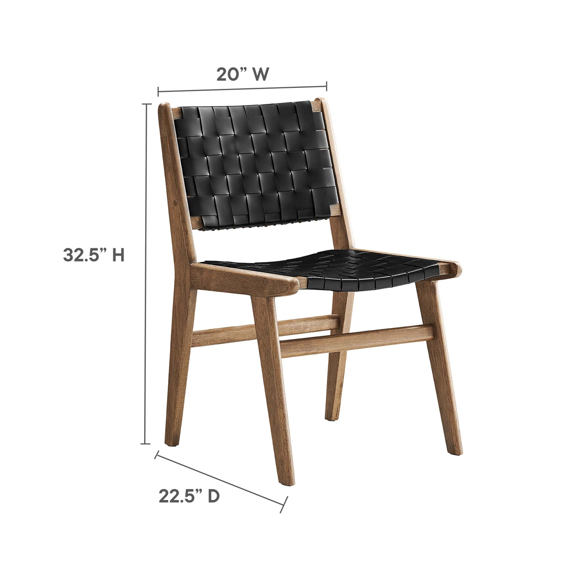 Spark engaging conversations with the Saoirse Dining Side Chair Set of Two. Artfully crafted with woven leather over a sturdy rubberwood frame, this set of two chairs blends contemporary design with tactile elegance. Non-marking foot pads ensure both stability and floor protection, while the basket weave design and crossbar supports make for a personalized seating experience. With an ergonomic design, these dining chairs are perfect for the dining room, living room, lounge area, home office, or bedroom. Assembly required. Weight Capacity: 331 lbs.