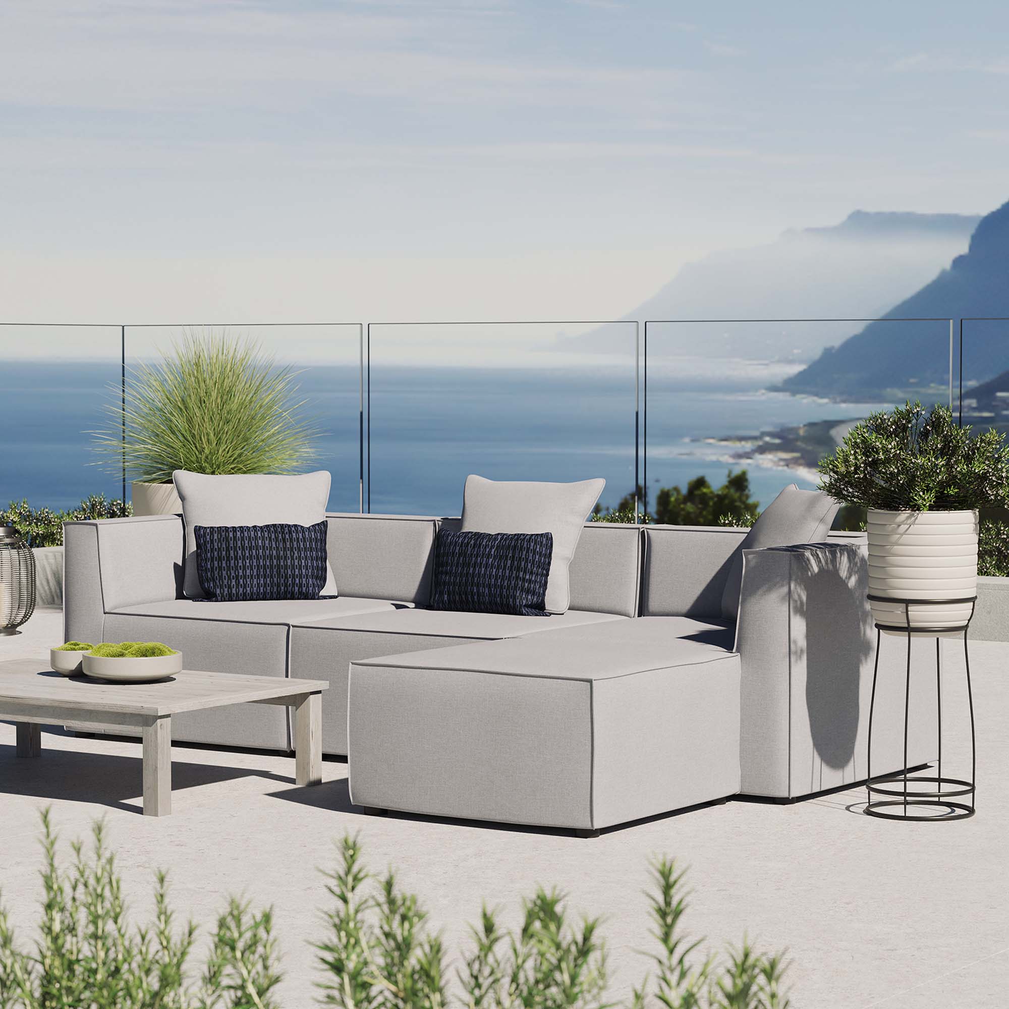 Saybrook 4-Piece Outdoor Patio Upholstered Sectional Sofa in Gray