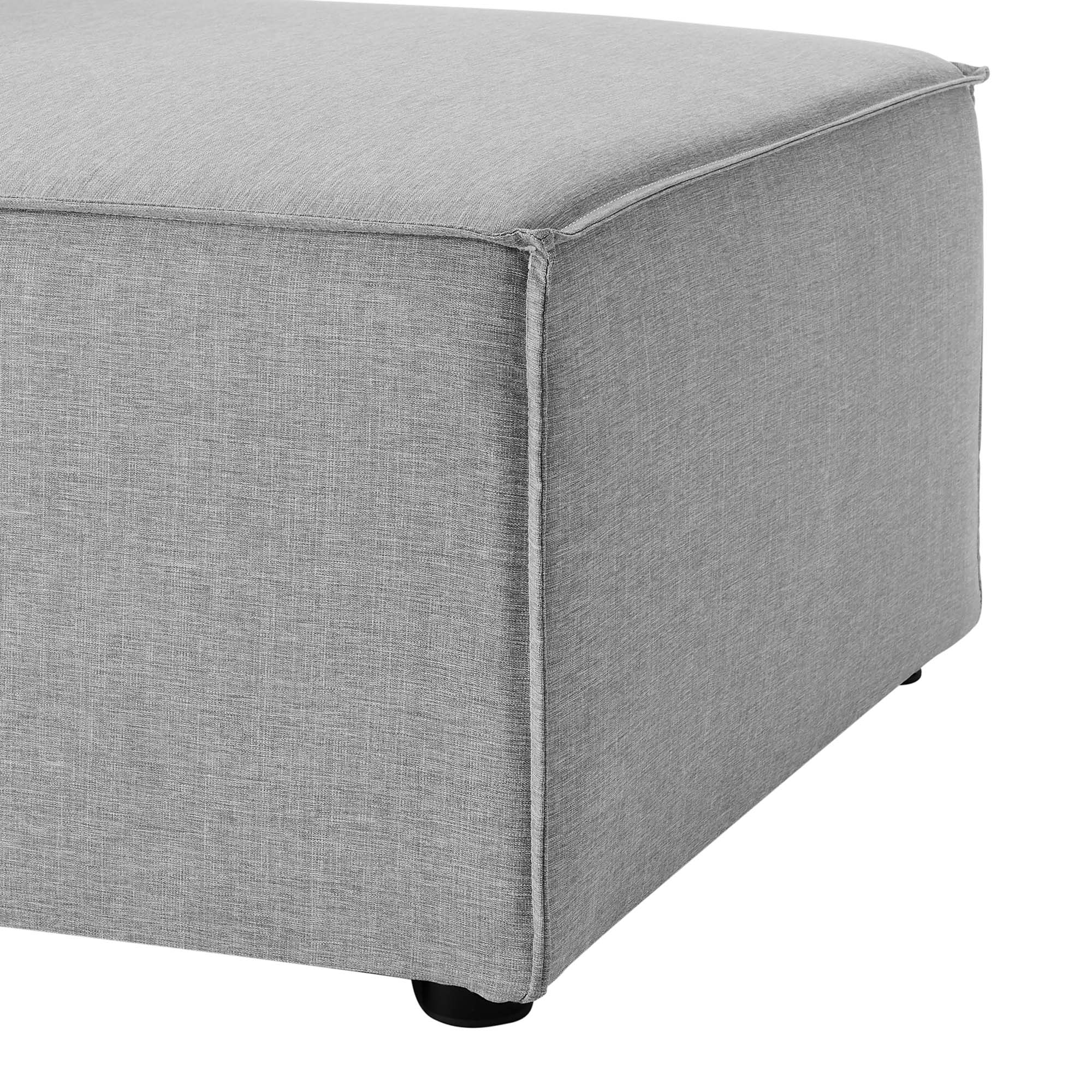 Bring relaxing comfort and modern style to your outdoor living space with the Outdoor Patio Saybrook Upholstered 4-Piece Sectional Sofa. Creating a custom seating area on your porch, deck, poolside, or patio, this all-weather patio sofa features a casual design accented by French piping details. This outdoor sectional sofa is complete with water and UV-resistant fabric upholstery, dense foam padding, and a sturdy aluminum frame with non-marking foot caps. Enjoy good weather and al fresco entertaining with the Saybrook Outdoor Patio Sectional Sofa Collection. Weight Capacity of Each Piece: 300 lbs.