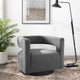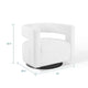 Whimsy and elegance swirl together with the Spin Performance Velvet Upholstered Swivel Accent Lounge Armchair. The glam deco design and curved cutaway back create vintage appeal for the Spin Living Room Chair, making it an accent chair that's certain to enhance a multitude of living room decor styles. Stain-resistant performance velvet polyester upholstery covers the dense foam padding creating a luxurious seat. Spin is solidly constructed from wood and plywood and sits on a 360 degree swivel textured matte black iron base. Ideally suited for your living room, lounge room, office, or other seating area, the Spin Armchair is an eye-catching addition designed to perfection. Chair Weight Capacity: 300 lbs.