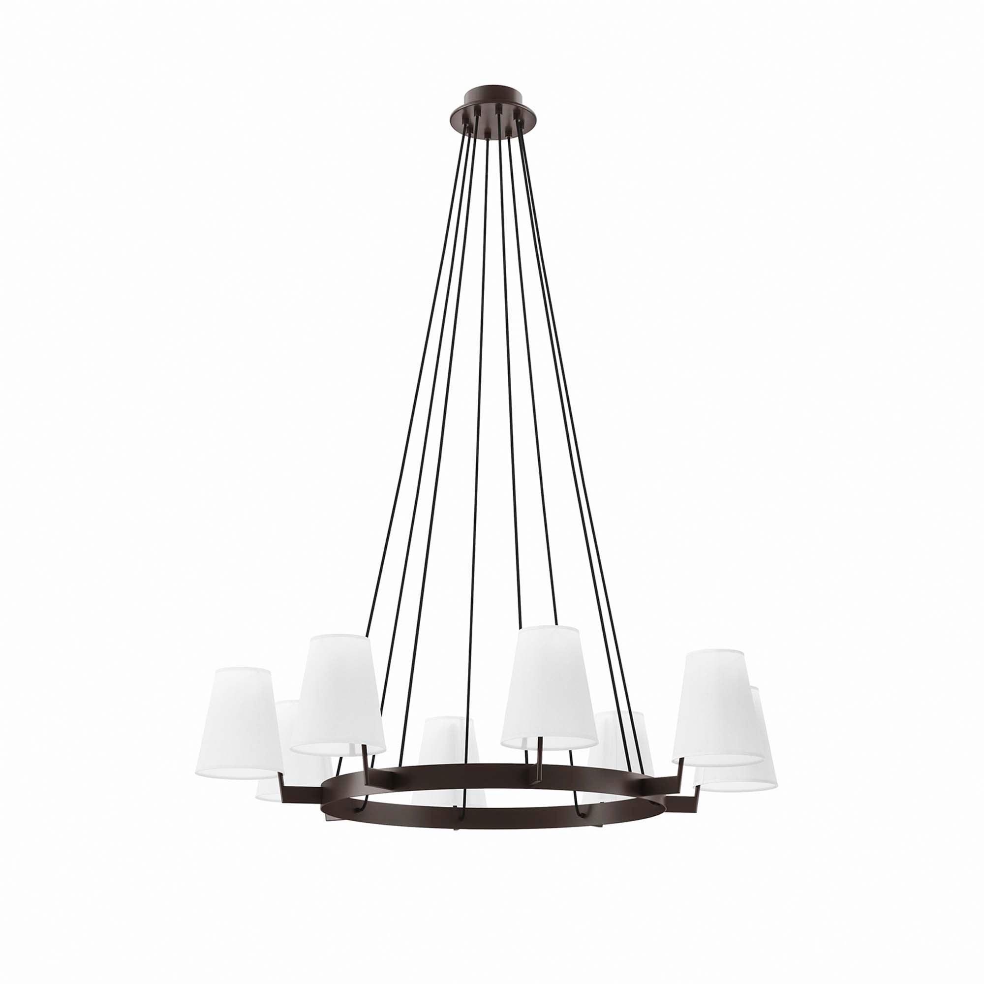 Cover your living space in a peaceful illumination from the Surround 8-Light Chandelier. Designed to light up the living room, kitchen, dining room, bedroom, or entryway, this pendant light features a circle of eight fabric cone shades and is suspended by eight height-adjustable cables making it customizable to a variety of ceiling heights. Surround is compatible with sloped ceilings. This pendant chandelier requires professional installation and eight E26 bulbs 60W max or LED equivalent (not included). ETL Listed for Damp Locations. Luminaires that are “Suitable for Damp Locations” are approved for areas that are regularly exposed to moisture and condensation.