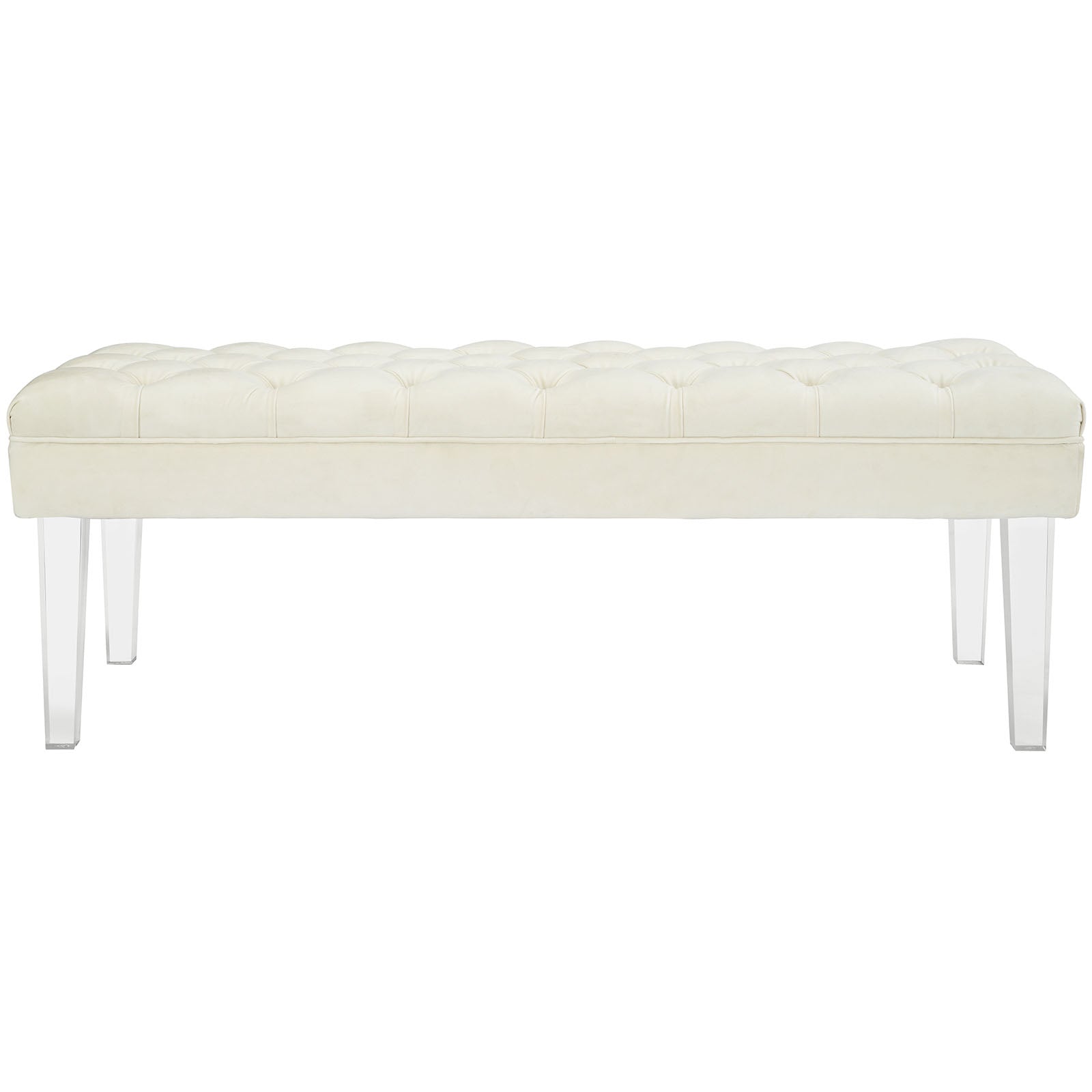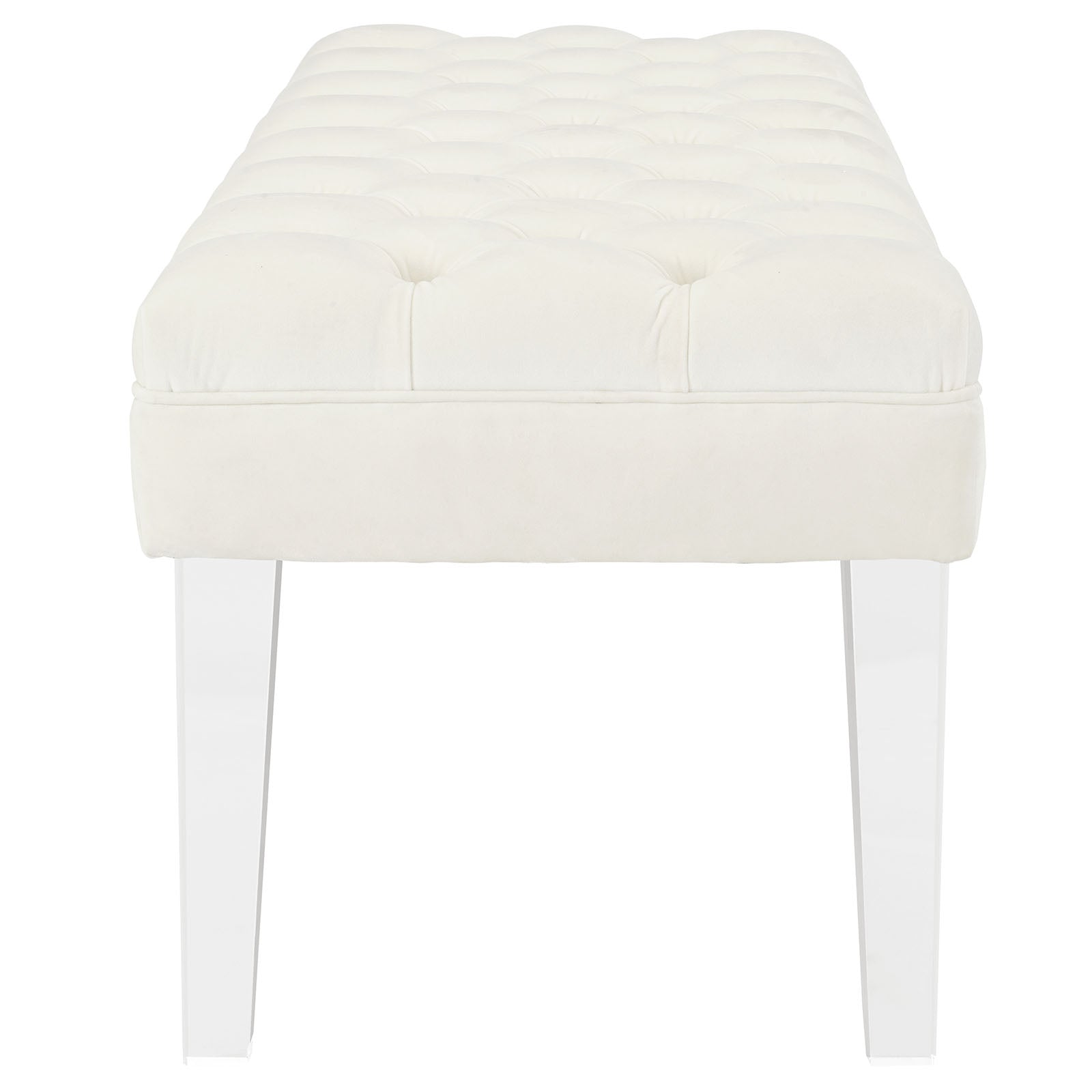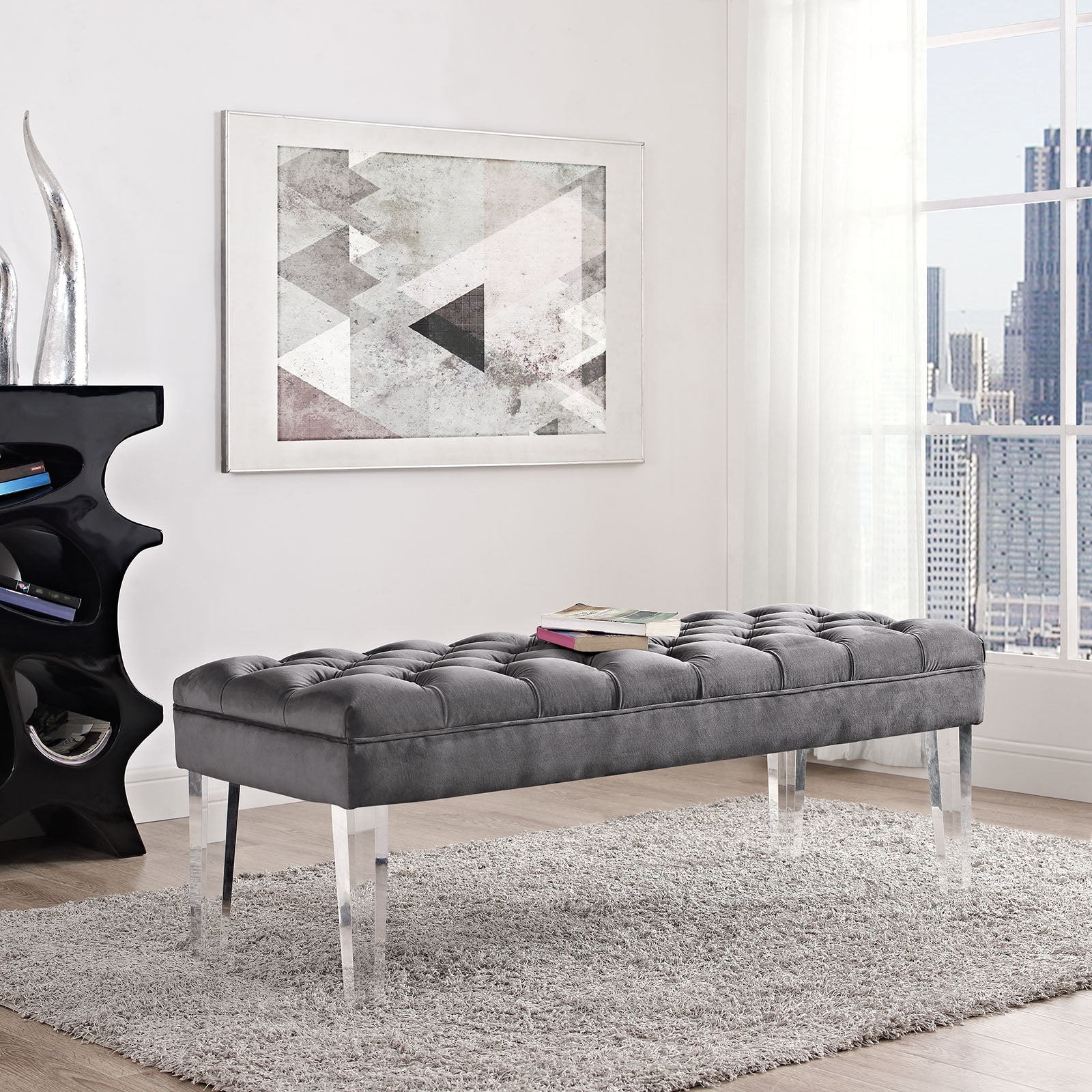 Energize your bed or living room décor with the Valet Performance Velvet Bench. Luxuriously tufted buttons adorn the soft, stain-resistant performance velvet upholstery for an exquisite look of exceptional appeal. Easy on visual space and elegantly chic, Valet comes densely padded in foam with four clear acrylic legs. The perfect addition to the modern home or apartment, instantly transform your room of choice with this exceptional piece.