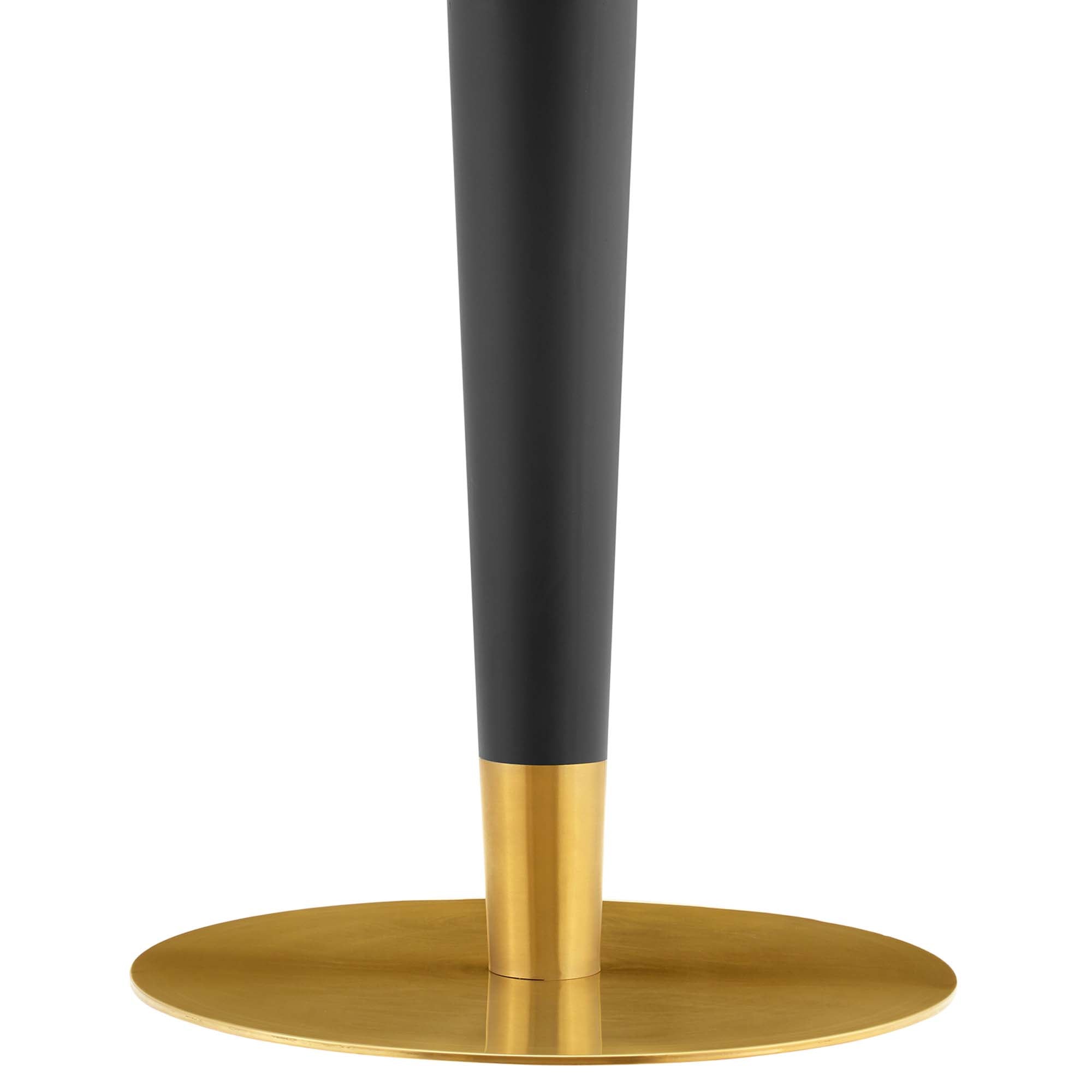 Gather family and friends for good food and conversation around the Zinque Dining Table. Bringing modern influence and mid-century inspiration to your dining space, this pedestal table reflects an organic shape. Perfect for entertaining or everyday dining, this dining table rests on a black and polished gold tapered base and features a 60" oval terrazzo tabletop. Non-marking ring to protect flooring. Assembly required.